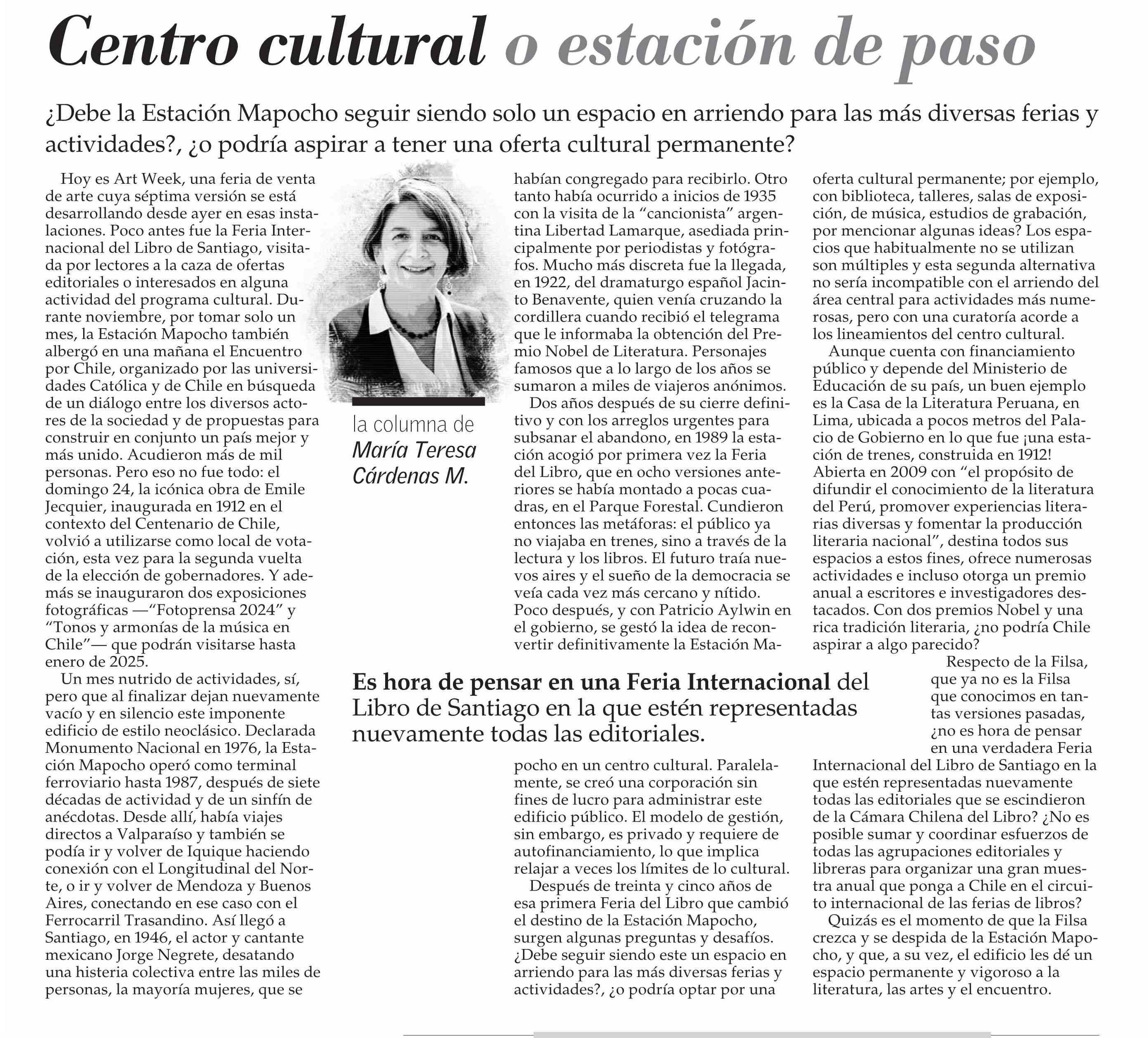 Centro cultural o estación de paso 01-12-2024 El Mercurio |