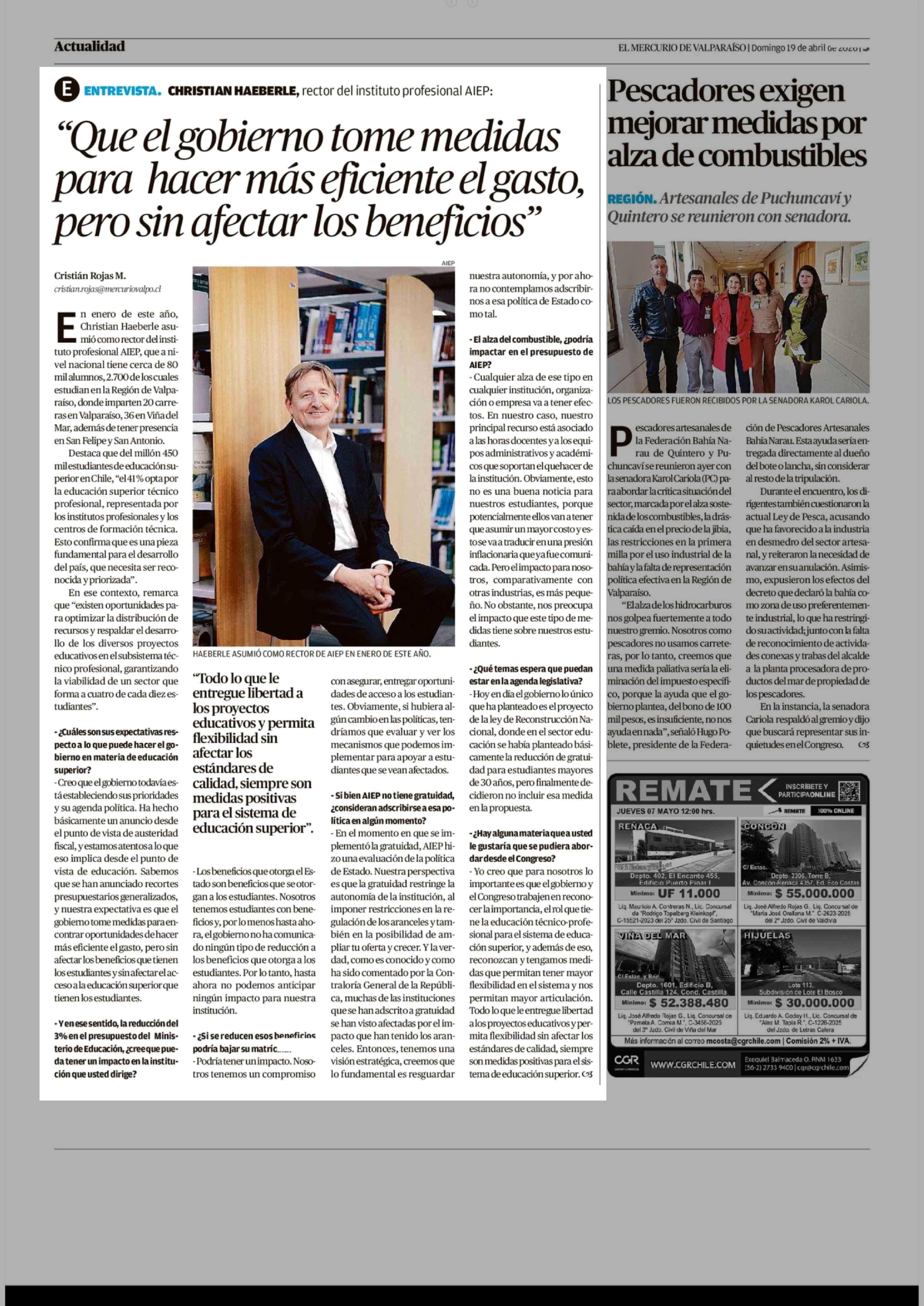 "Que el gobierno tome medidas para hacer más eficiente el gasto, pero sin afectar los beneficios" 19-04-2026 El Mercurio de Valparaíso |