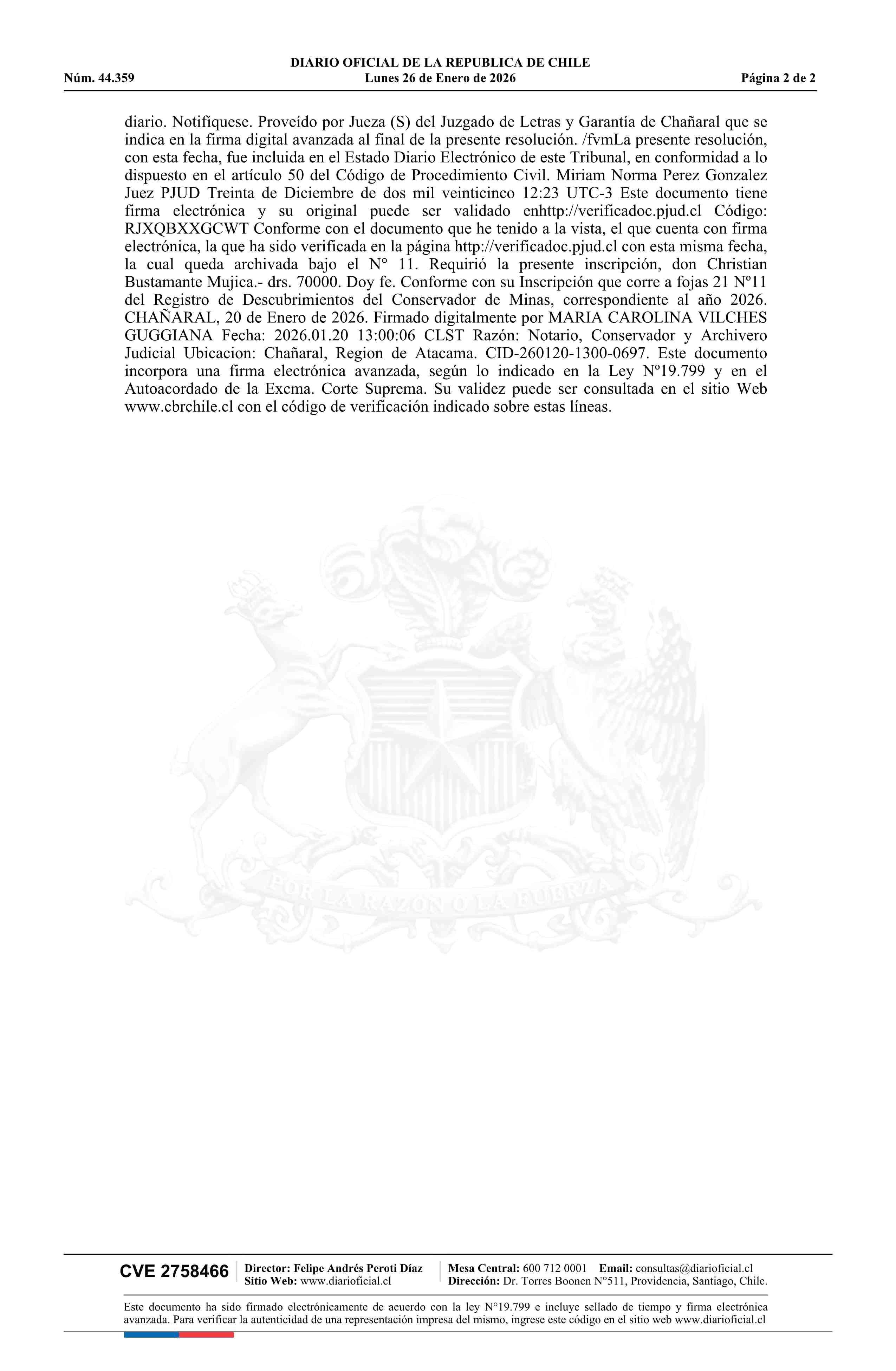 RESERVA / Asesorías Mineras ABS SpA 26-01-2026 DIARIO OFICIAL CHILE - BOLETÍN OFICIAL DE MINERÍA |