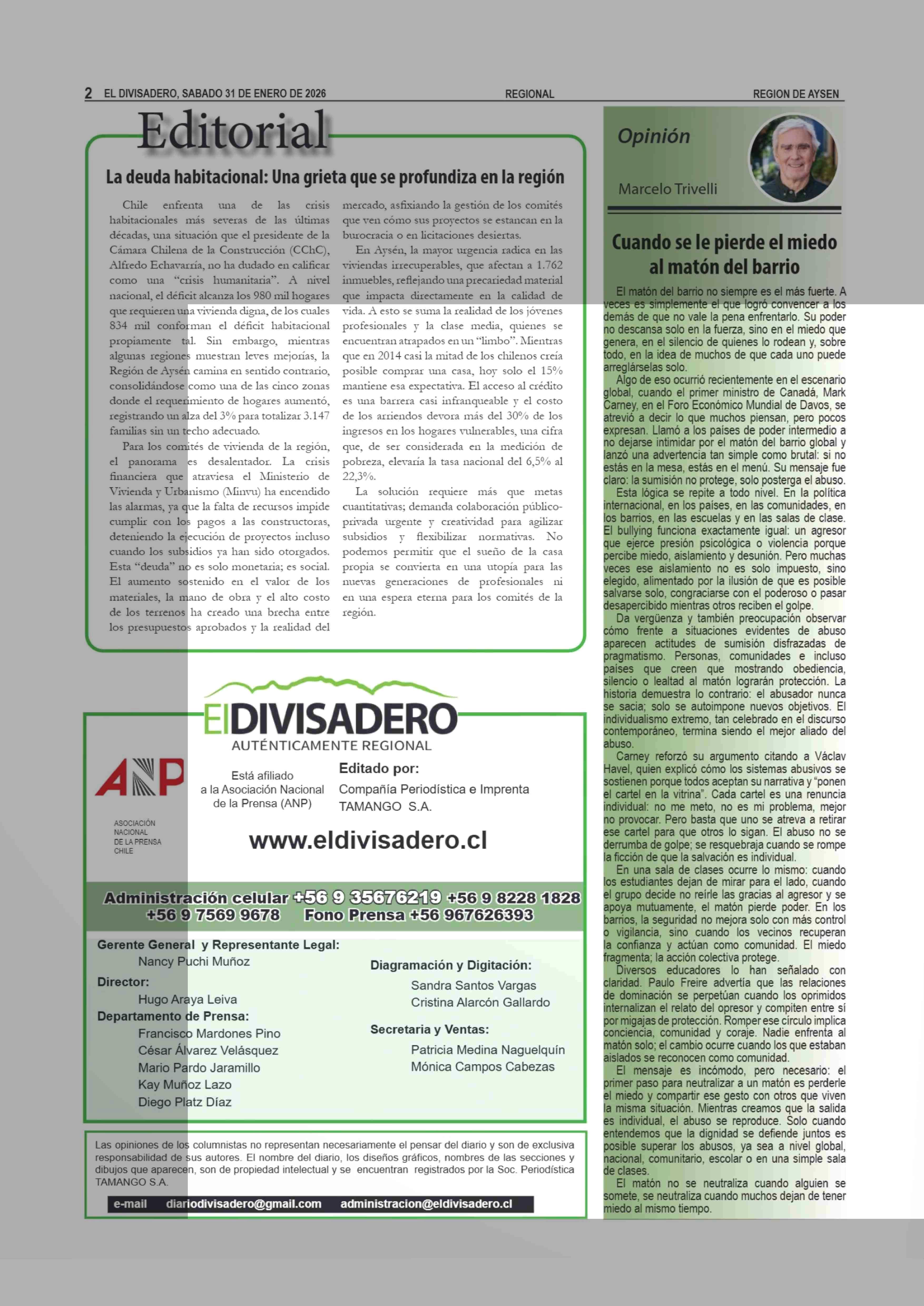 | Fecha: | 31-01-2026 | Sector: | Editorial | Región: | Región Aysén del General Carlos Ibáñez del Campo |
