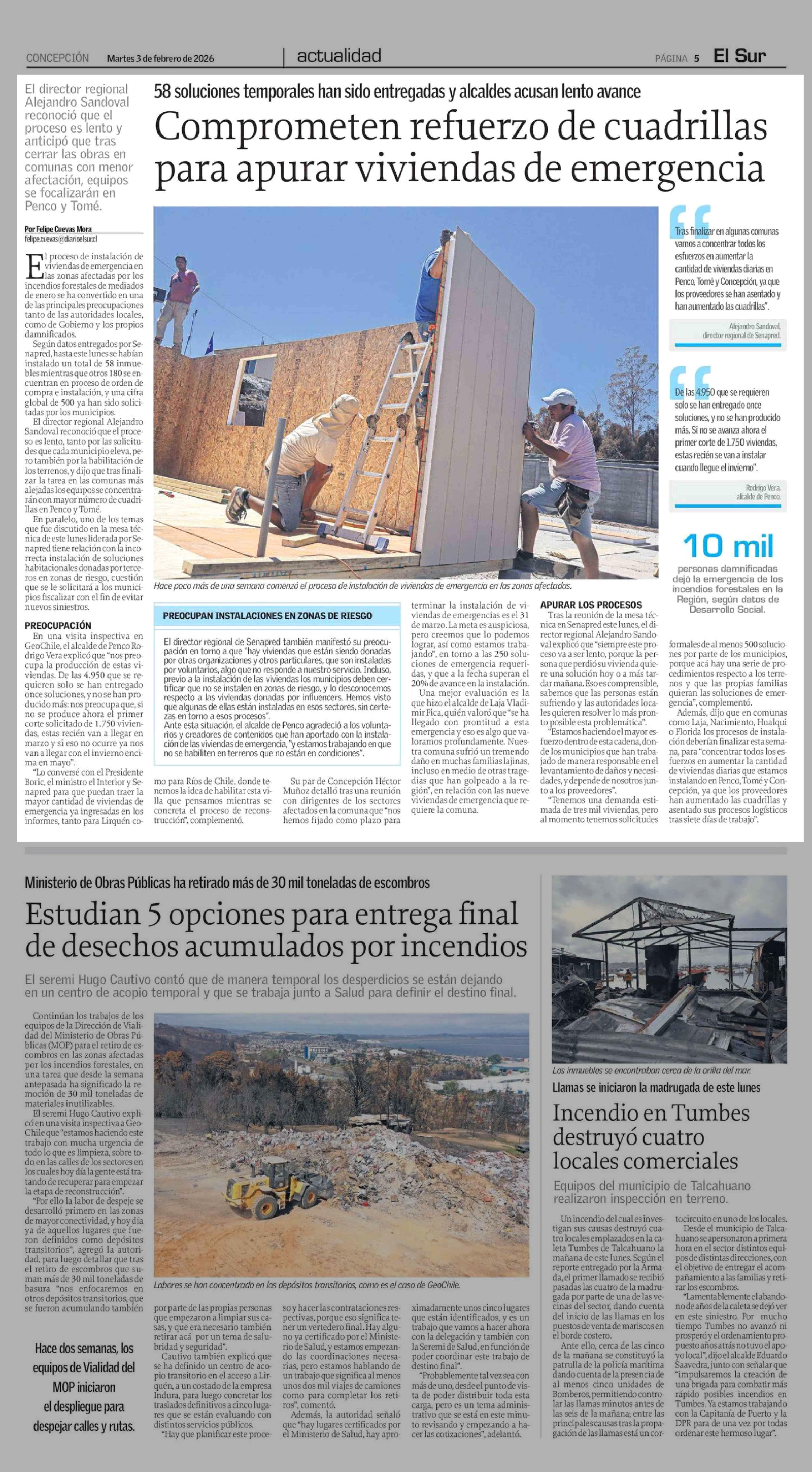 Comprometen refuerzo de cuadrillas para apurar viviendas de emergencia 03-02-2026 El Sur |