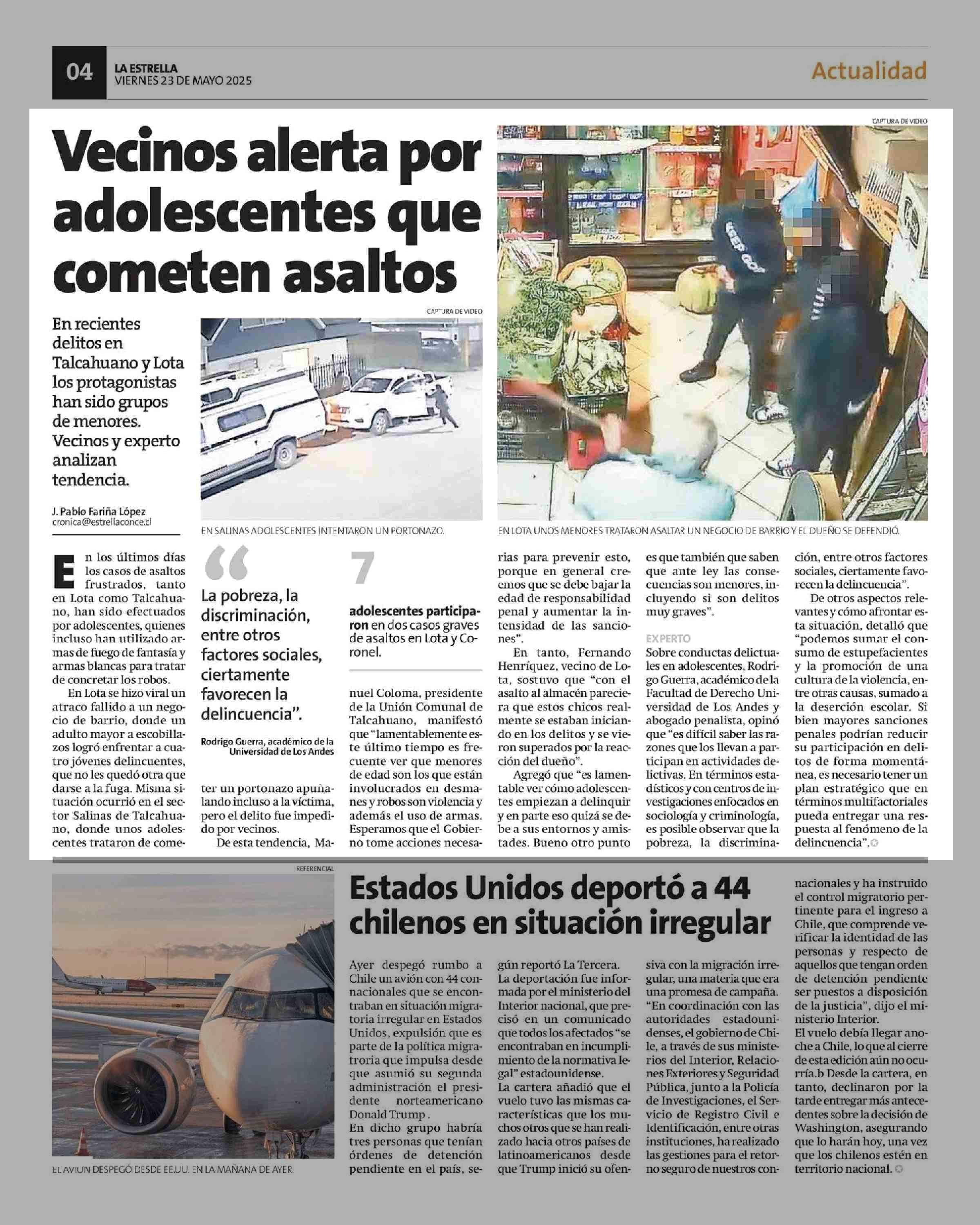 Vecinos alerta por adolescentes que cometen asaltos 23-05-2025 La Estrella de Concepción |