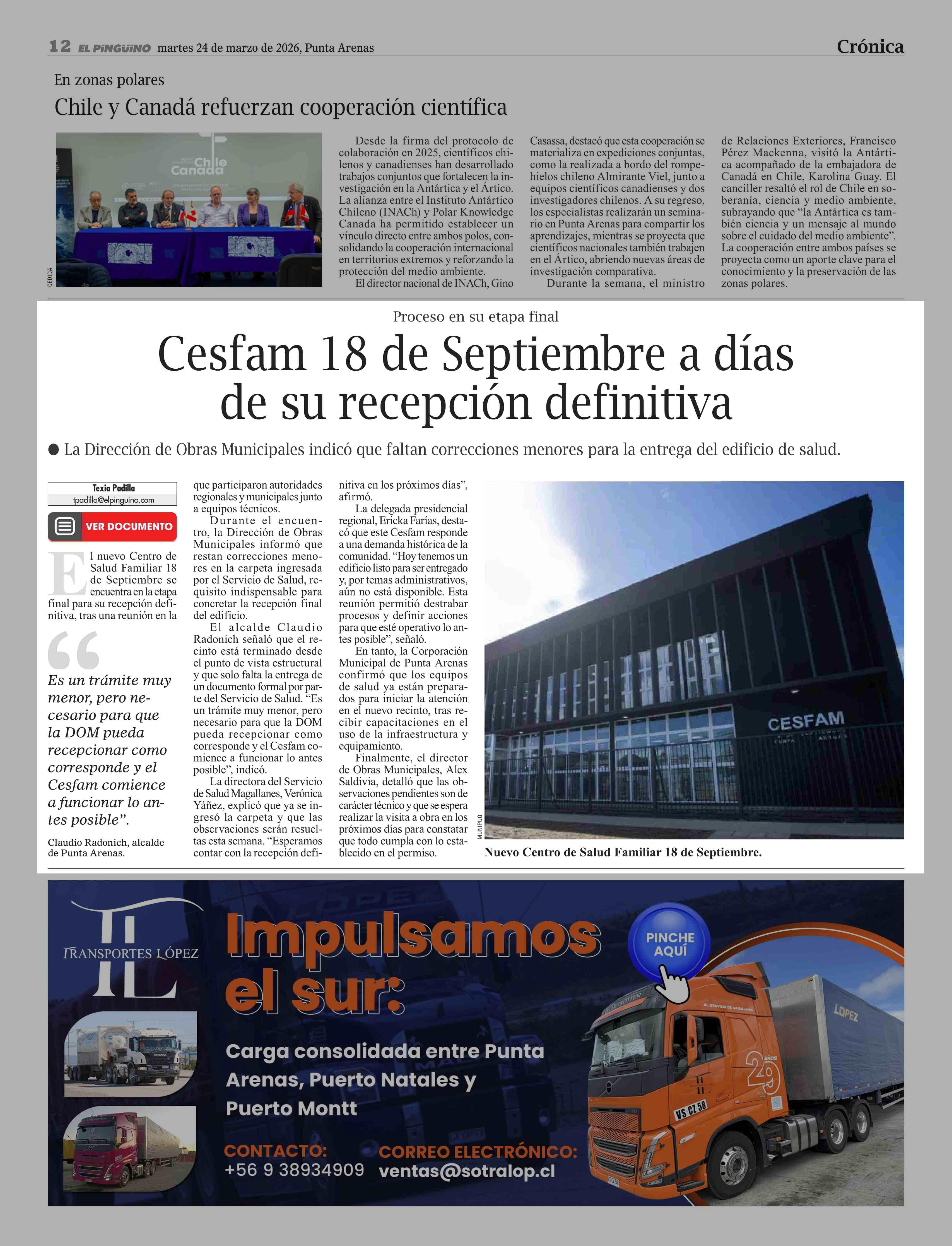 | Fecha: | 24-03-2026 | Sector: | Noticia general | Región: | Región de Magallanes y de la Antártica Chilena |