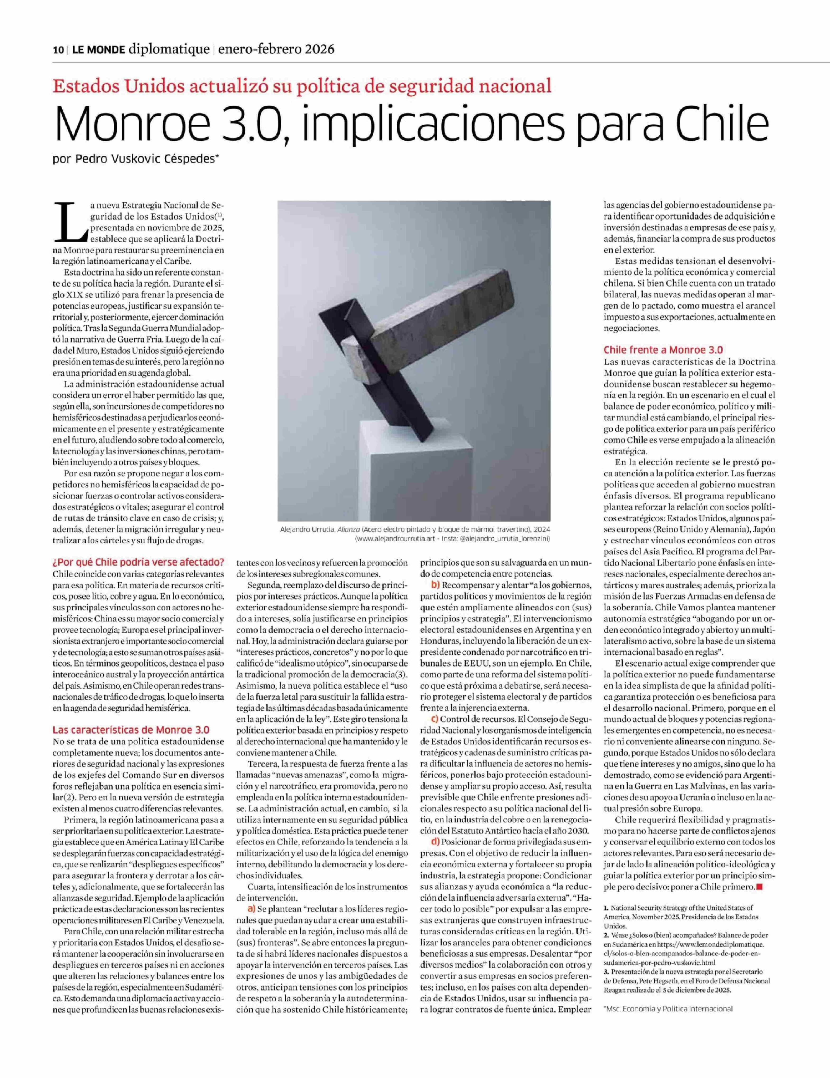 Título: COLUMNAS DE OPINIÓN: Monroe 3.0, implicaciones para Chile