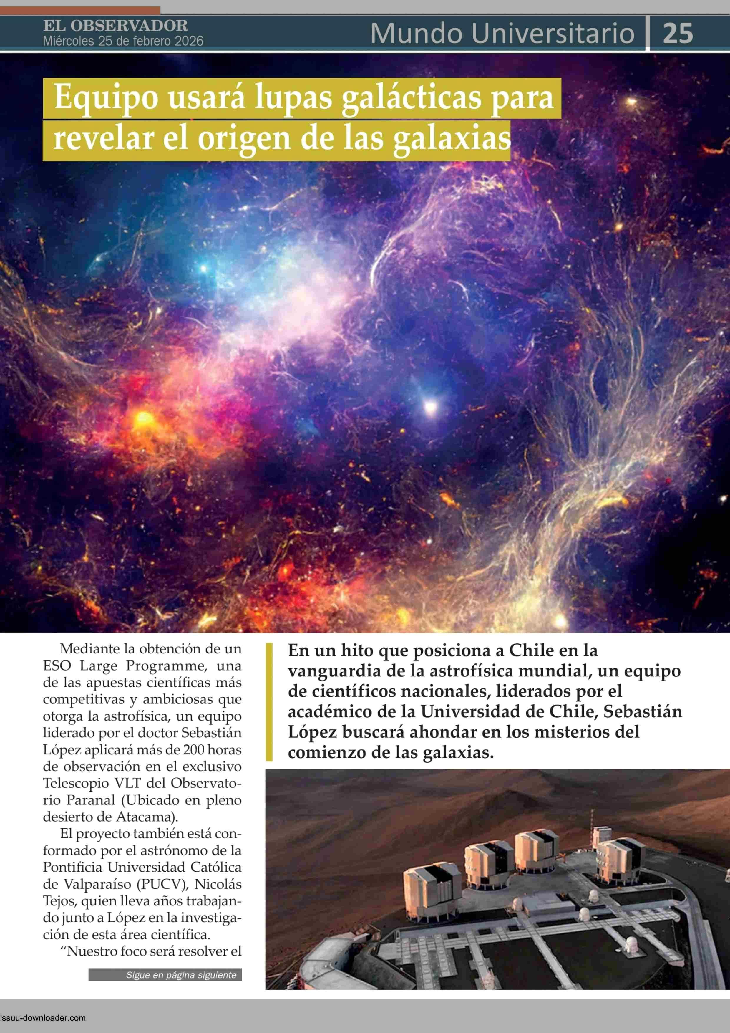 EQUIPO USARÁ LUPAS GALÁCTICAS PARA REVELAR EL ORIGEN DE LAS GALAXIAS 25-02-2026 El Observador Vespertino |