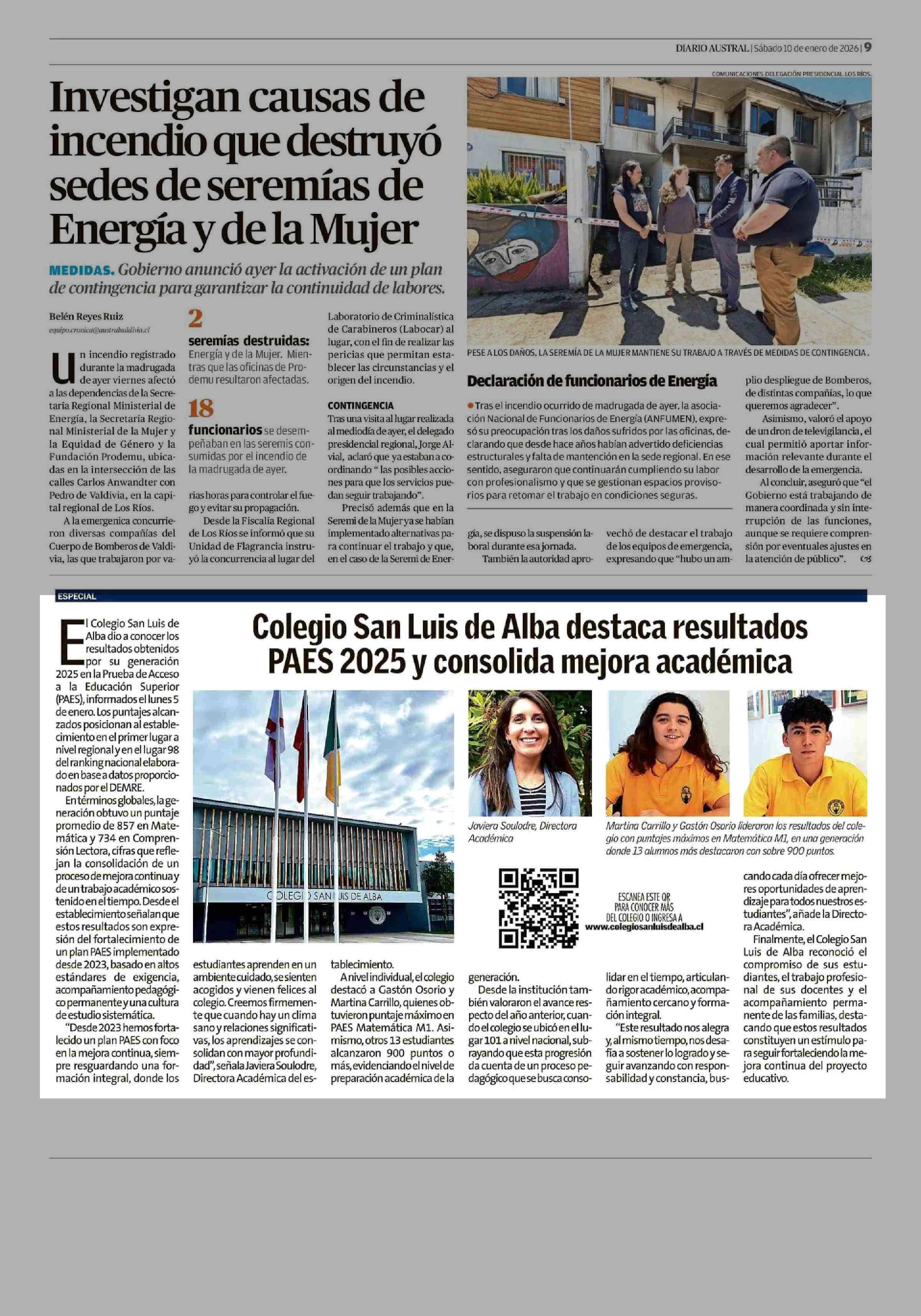 Colegio San Luis de Alba destaca resultados PAES 2025 y consolida mejora académica 10-01-2026 Diario Austral Región de Los Ríos |