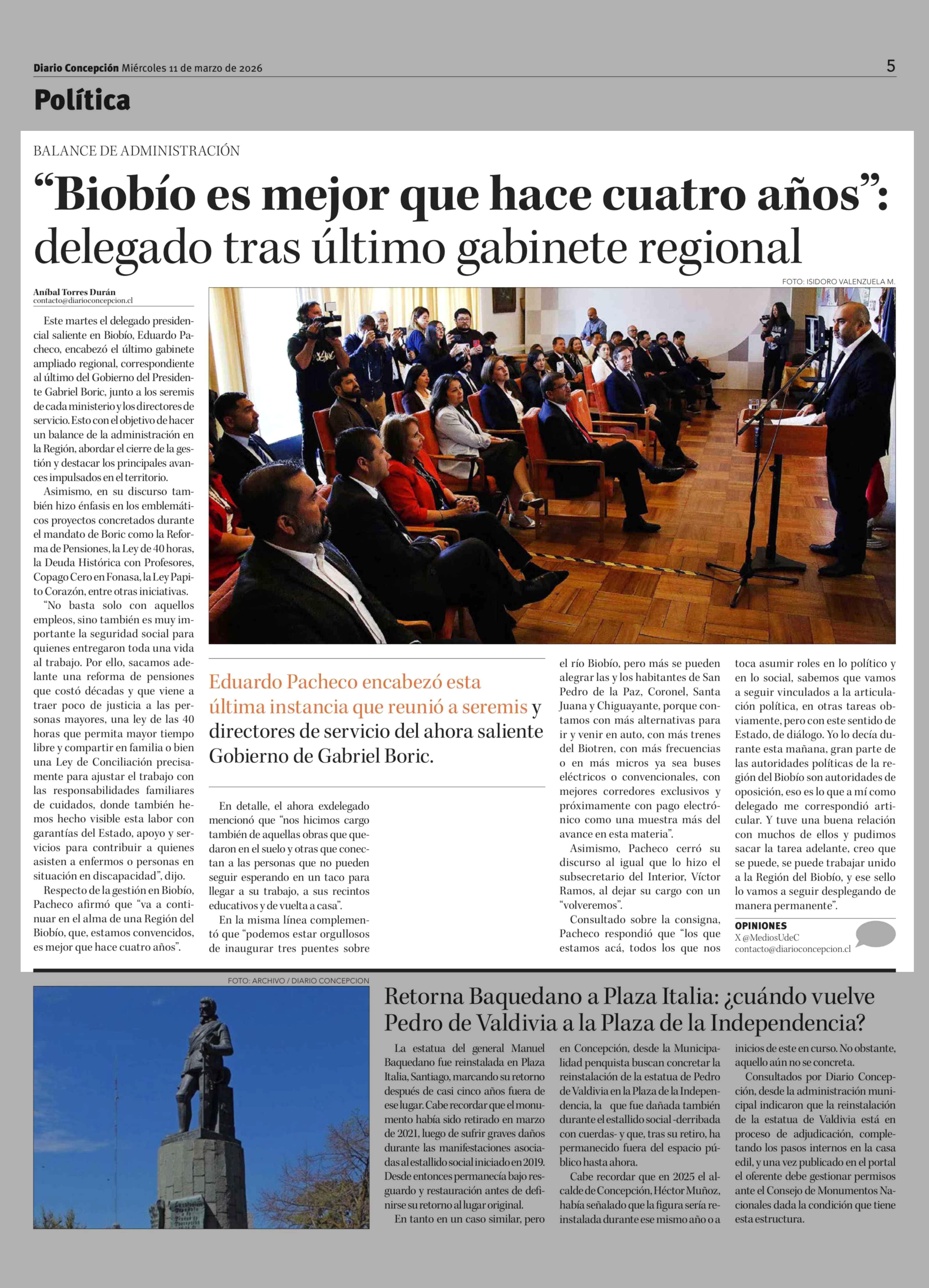 Título: "Biobío es mejor que hace cuatro años": delegado tras último gabinete regional