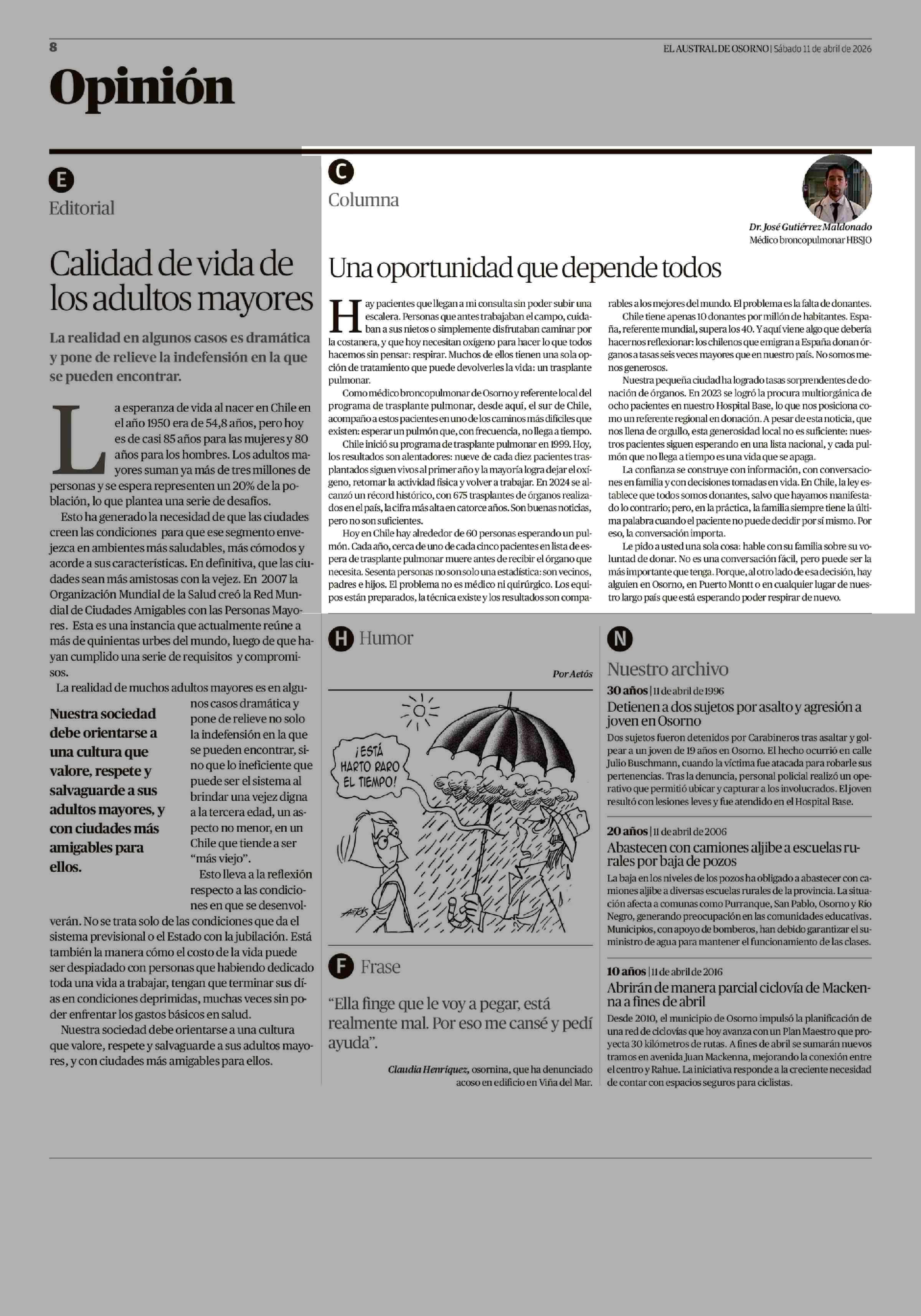 Fecha: 11-04-2026 Sector: Columnas de Opinión Región: Región de Los Lagos