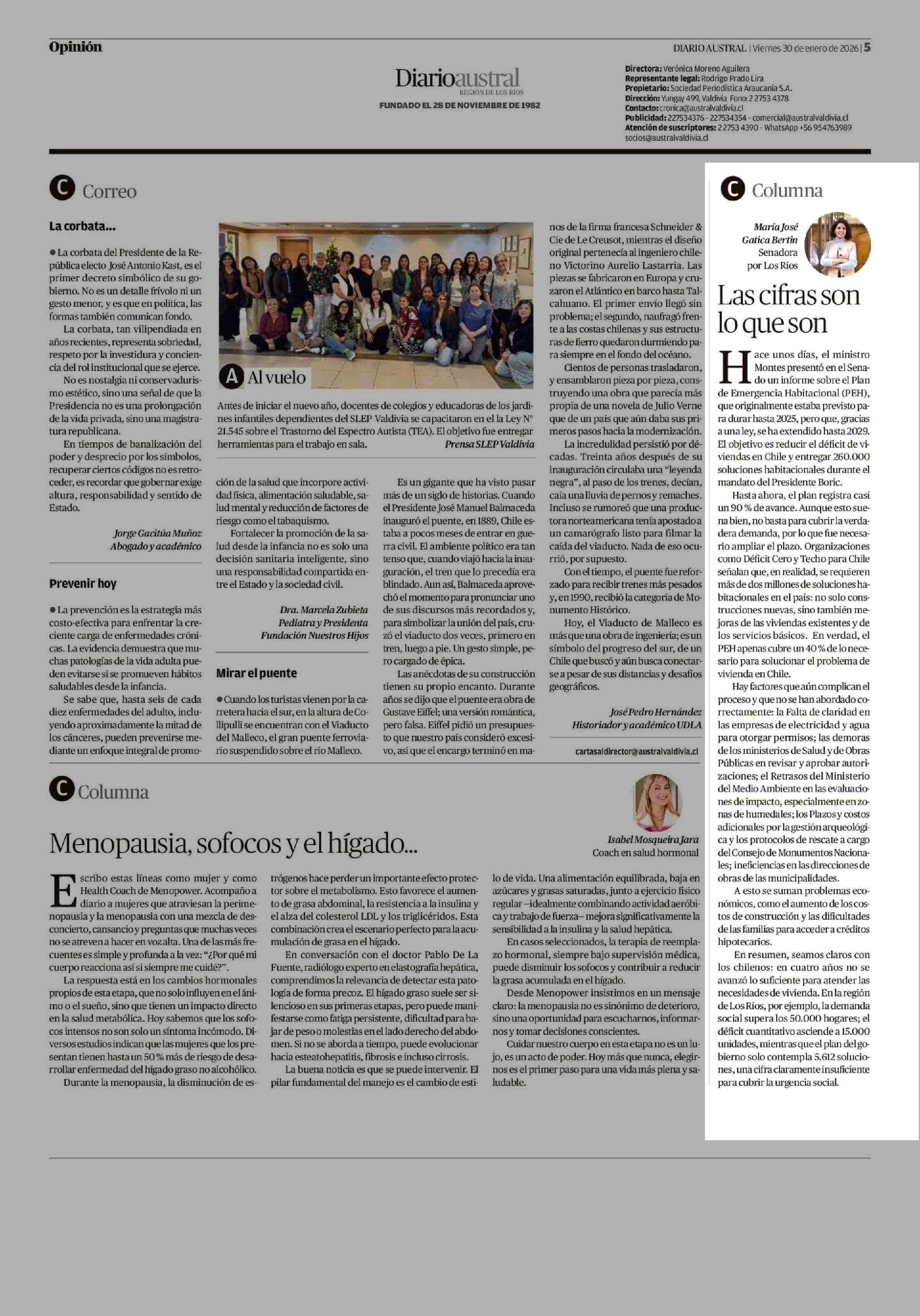 COLUMNAS DE OPINIÓN: Las cifras son lo queson 30-01-2026 Diario Austral Región de Los Ríos |
