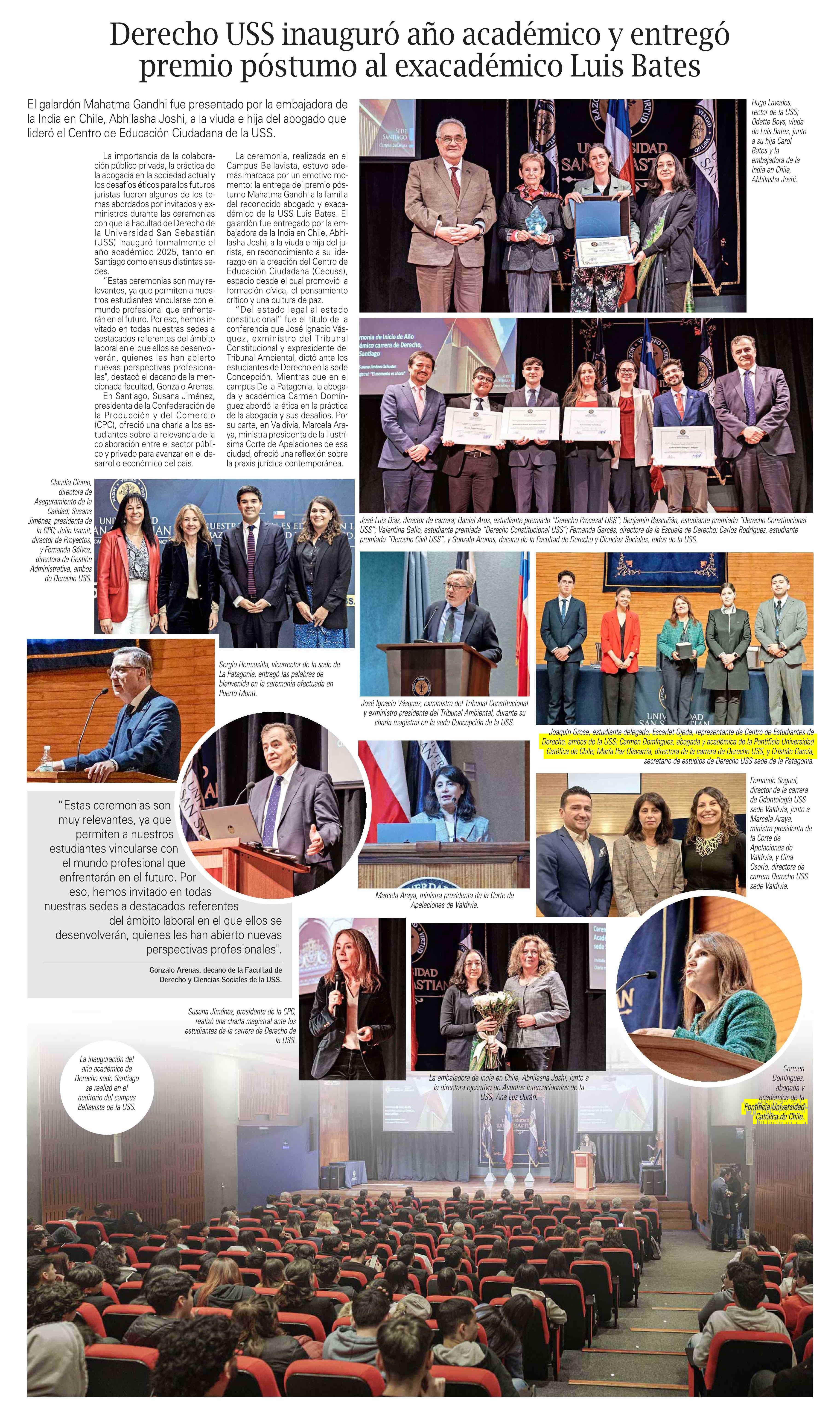 Derecho USS inauguró año académico y entregó premio póstumo al exacadémico Luis Bates 25-05-2025 El Mercurio |