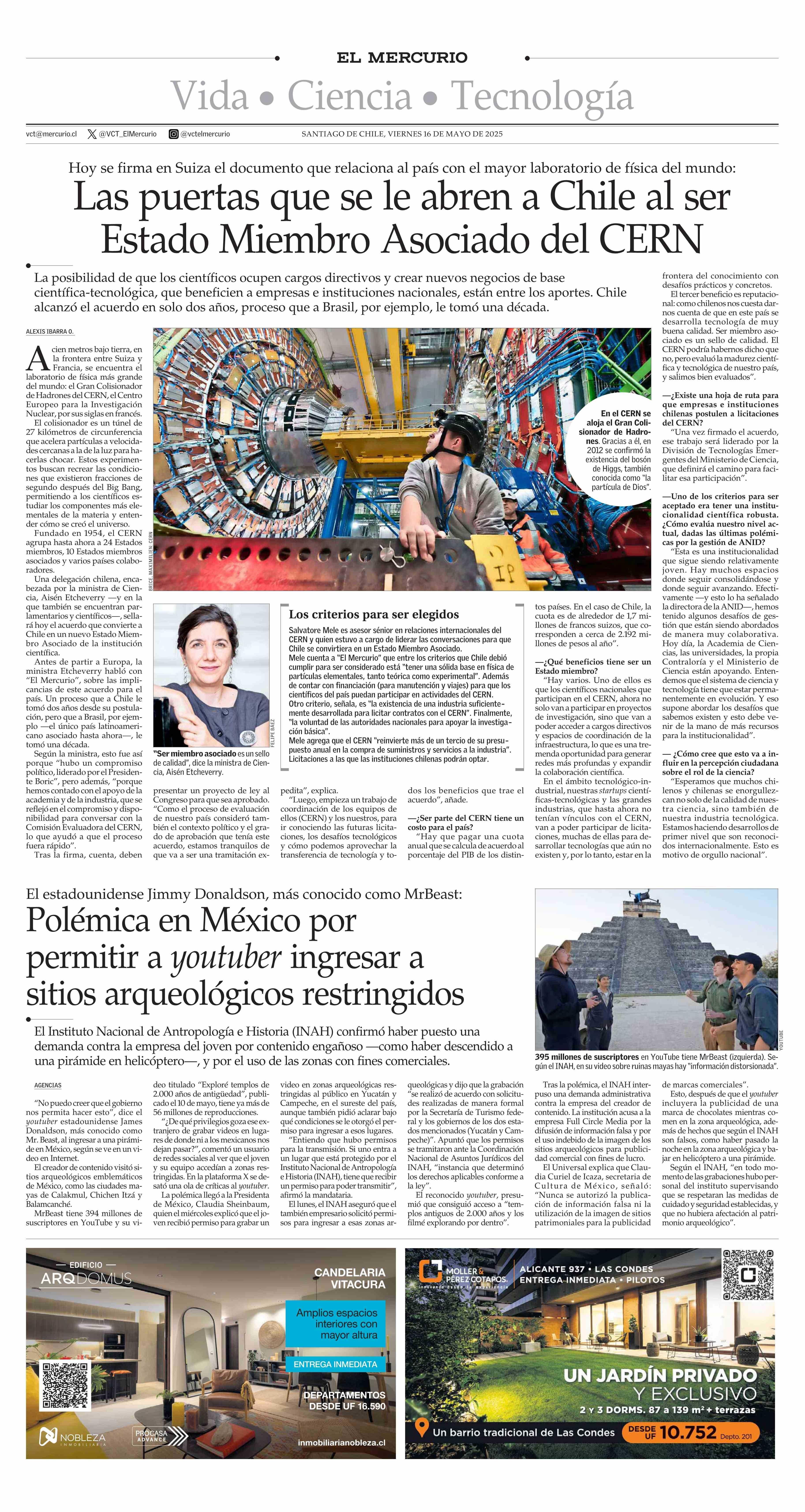 Las puertas que se le abren a Chile al ser Estado Miembro Asociado del CERN 16-05-2025 El Mercurio |