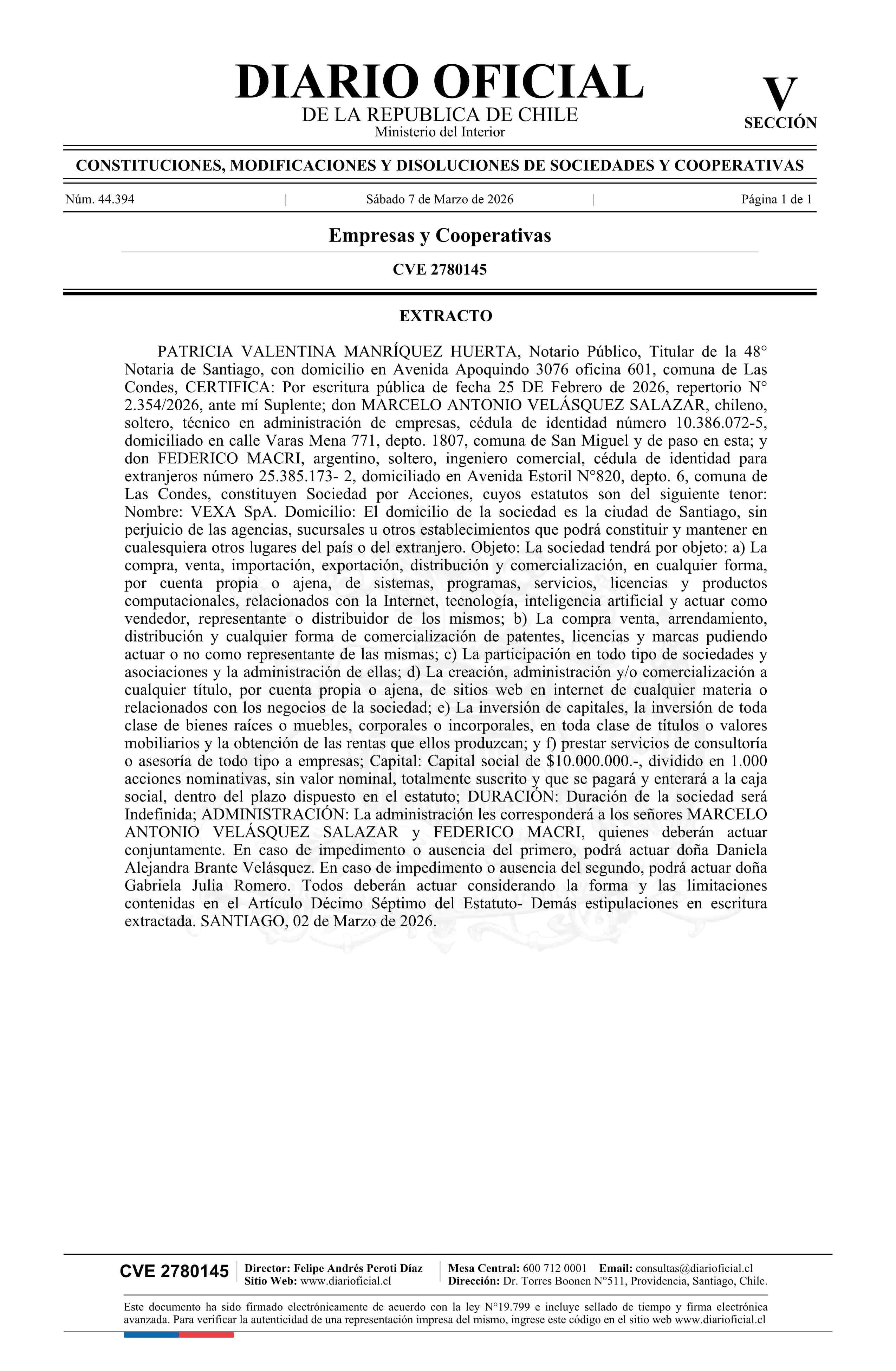 Fuente: Diario Oficial Edición Electrónica (Diario Oficial de Chile - 5 Empresas Y Cooper) Página(s): 84
