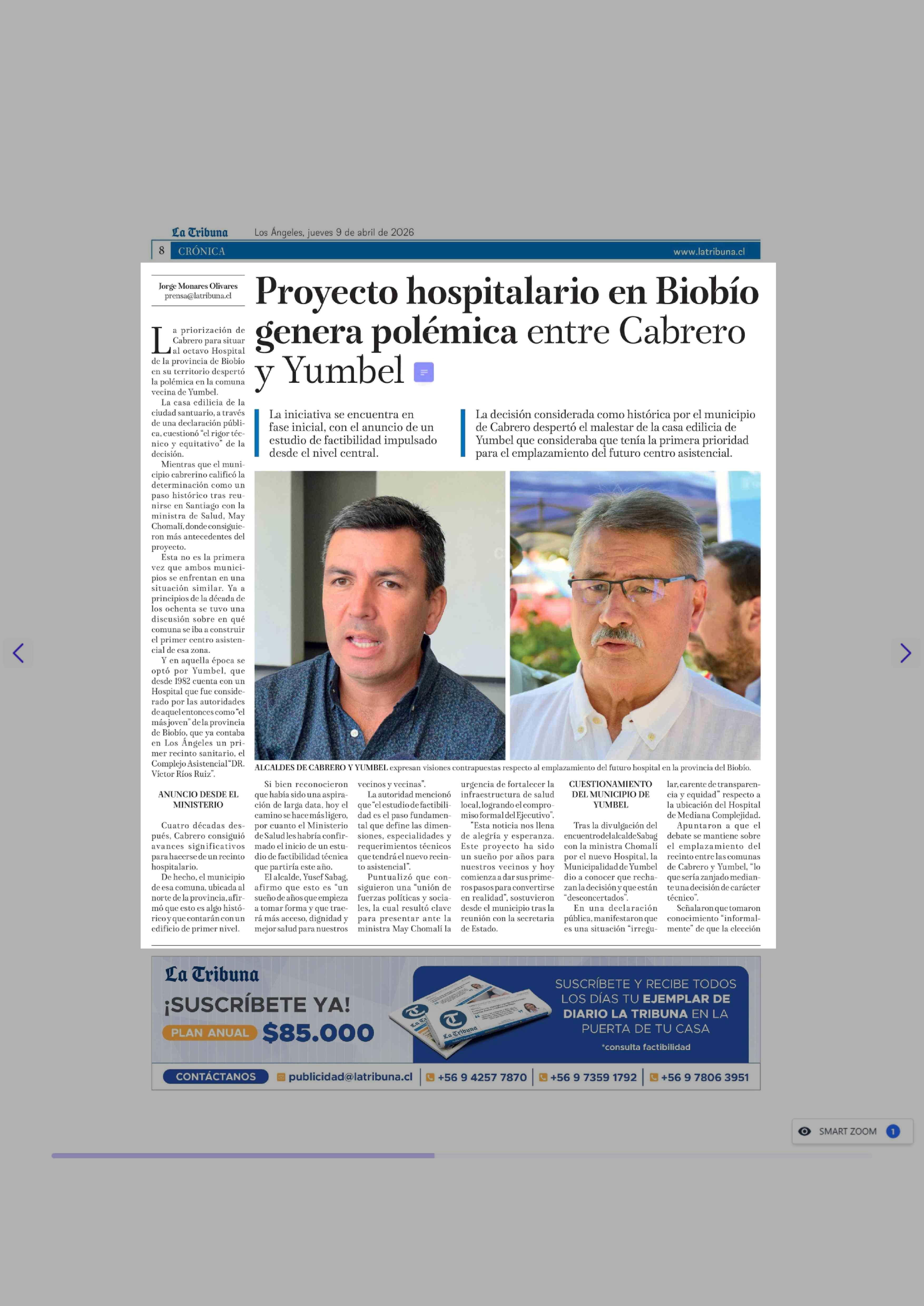 Título: Proyecto hospitalario en Biobío genera polémica entre Cabrero y Yumbel