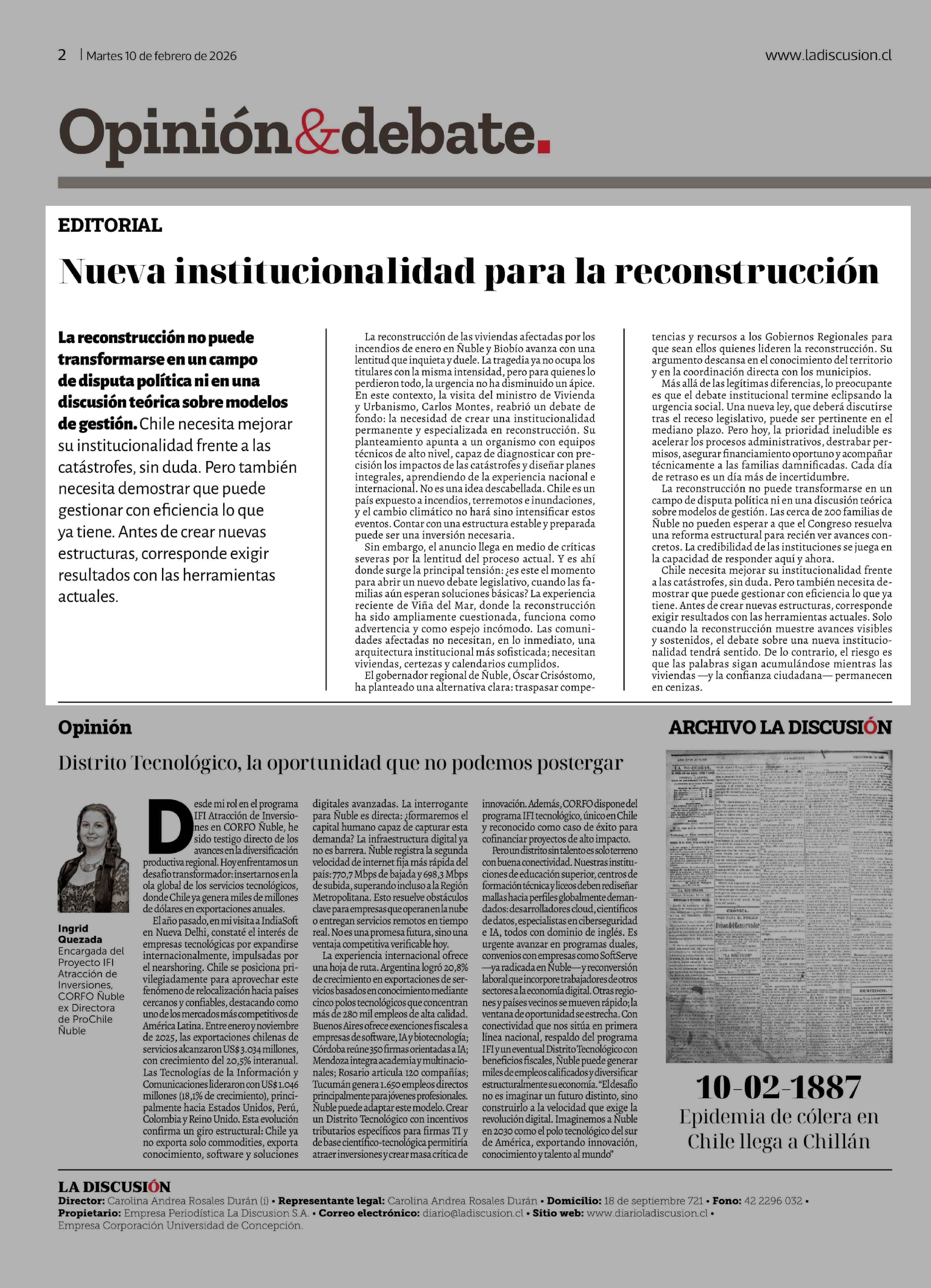 | Fecha: | 10-02-2026 | Sector: | Editorial | Región: | Región del Ñuble |