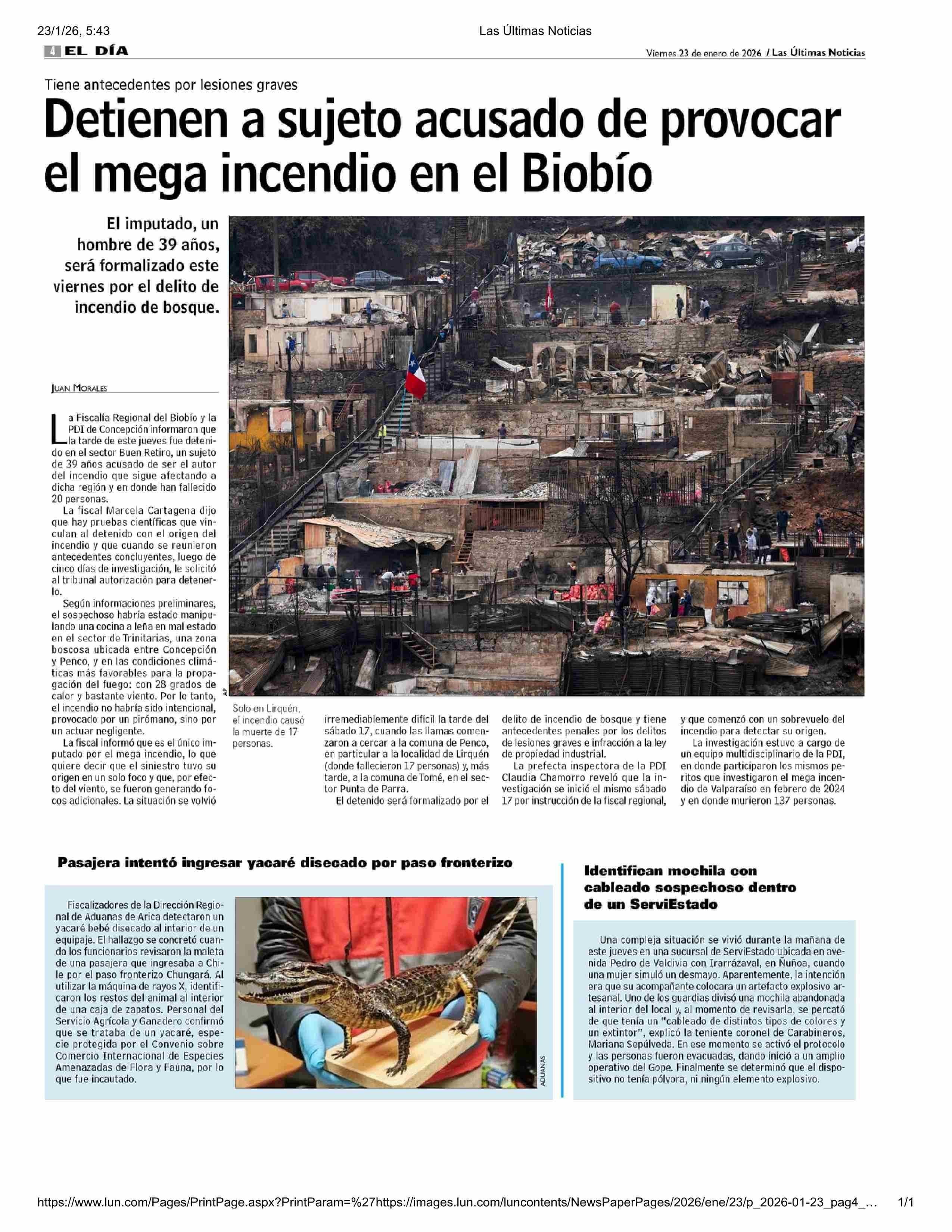 Título: Detienen a sujeto acusado de provocar el mega incendio en el Biobío