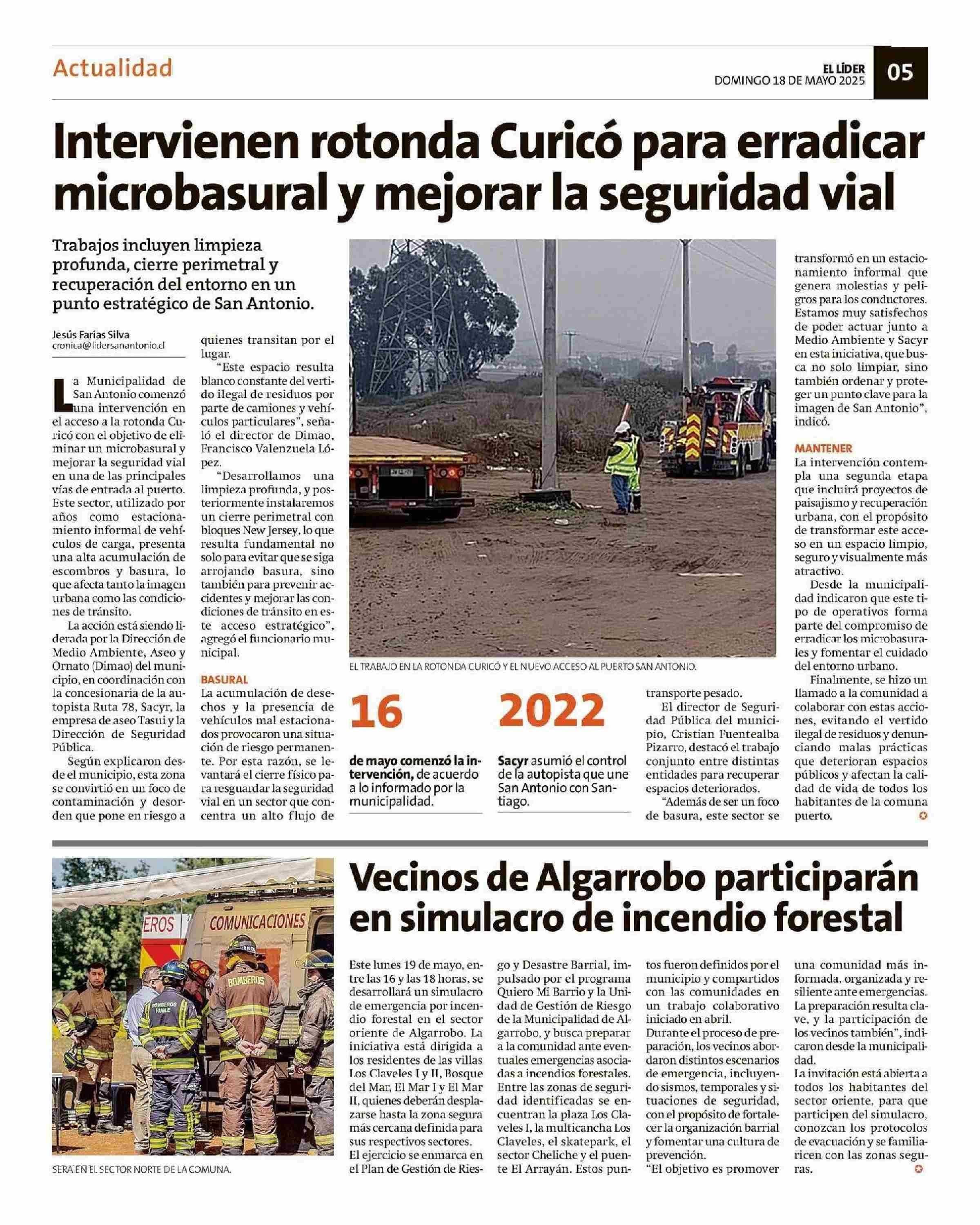 Intervienen rotonda Curicó para erradicar microbasural y mejorar la seguridad vial 18-05-2025 El Líder |