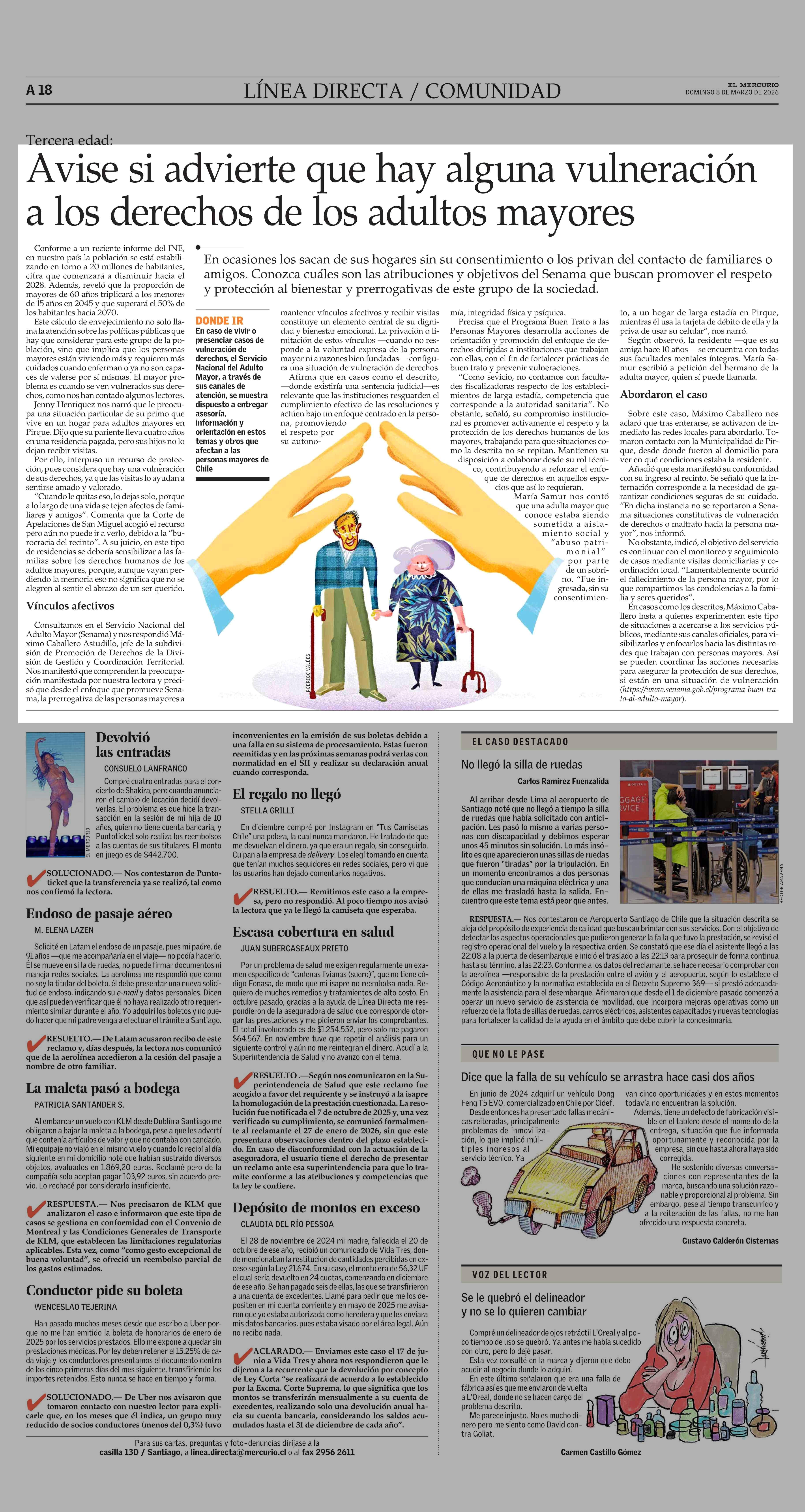 Avise si advierte que hay alguna vulneración a los derechos de los adultos mayores 08-03-2026 El Mercurio |