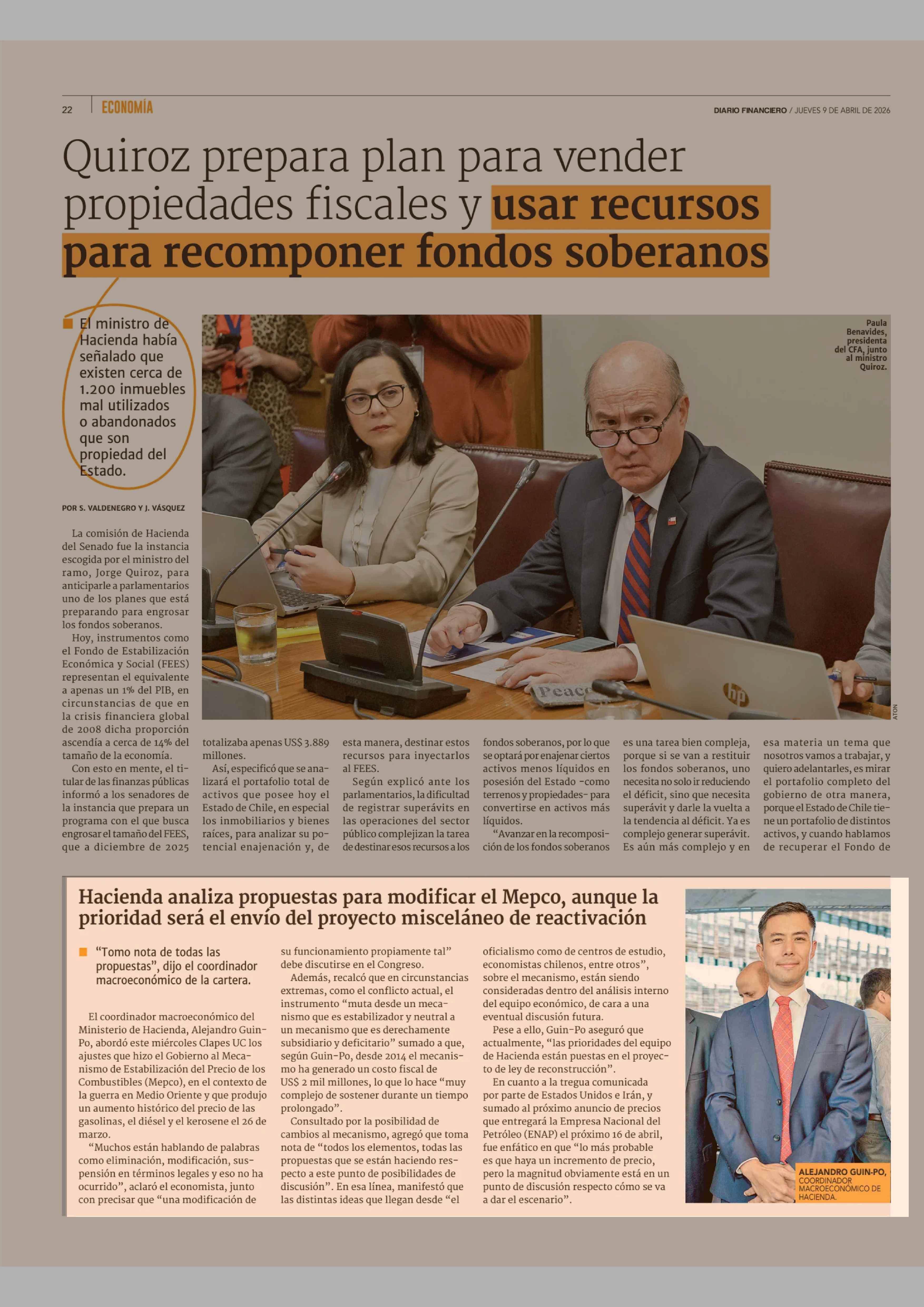 Hacienda analiza propuestas para modificar el Mepco, aunque la prioridad será el envío del proyecto misceláneo de reactivación 09-04-2026 Diario Financiero |