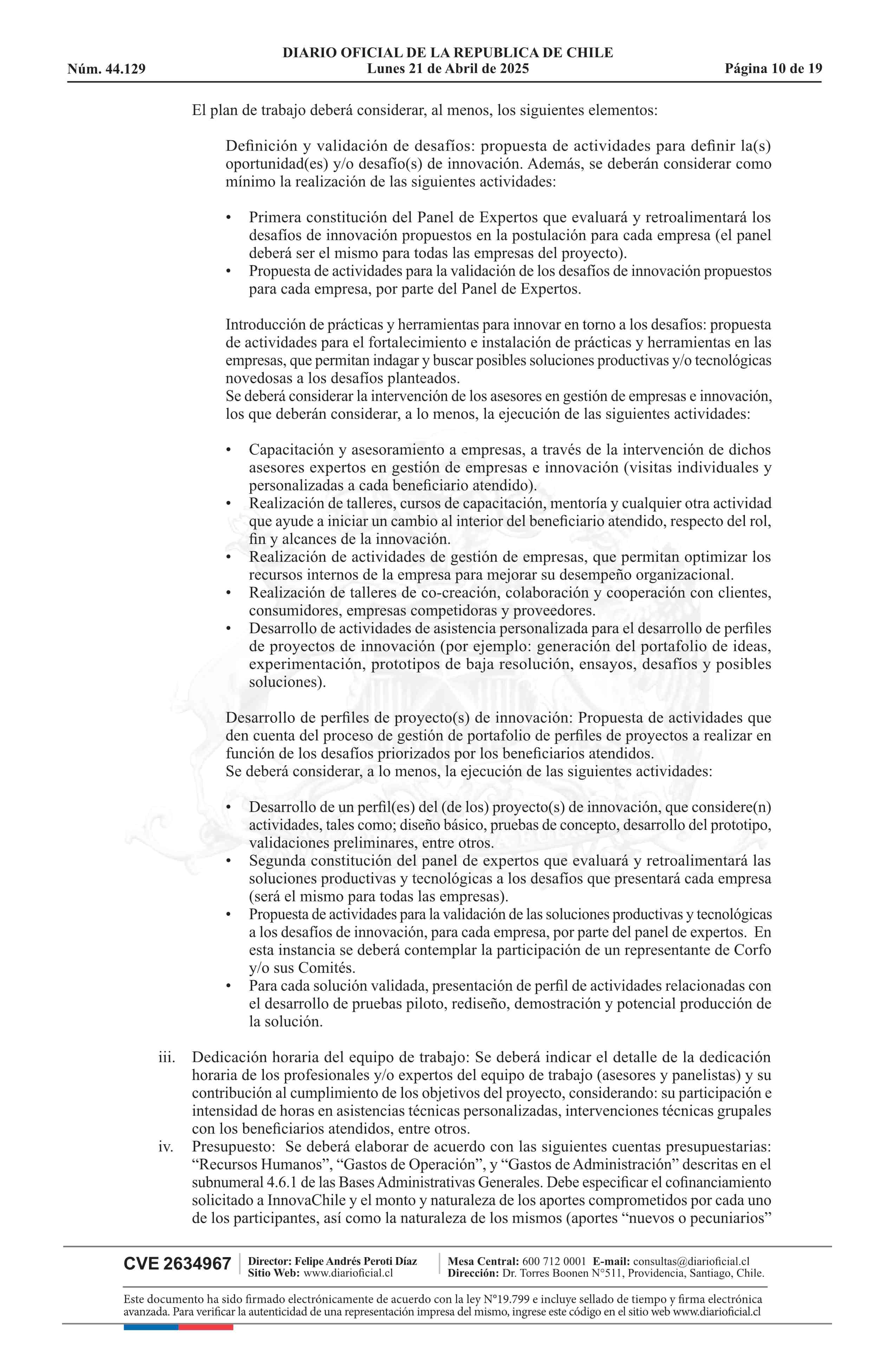 Resolución exenta número 125, de 2025.- Modifica instrumento de financiamiento denominado Gestión de Innovación en Pymes y aprueba nuevo texto de sus bases y su anexo 21-04-2025 DIARIO OFICIAL CHILE - BOLETÍN OFICIAL DE MINERÍA |