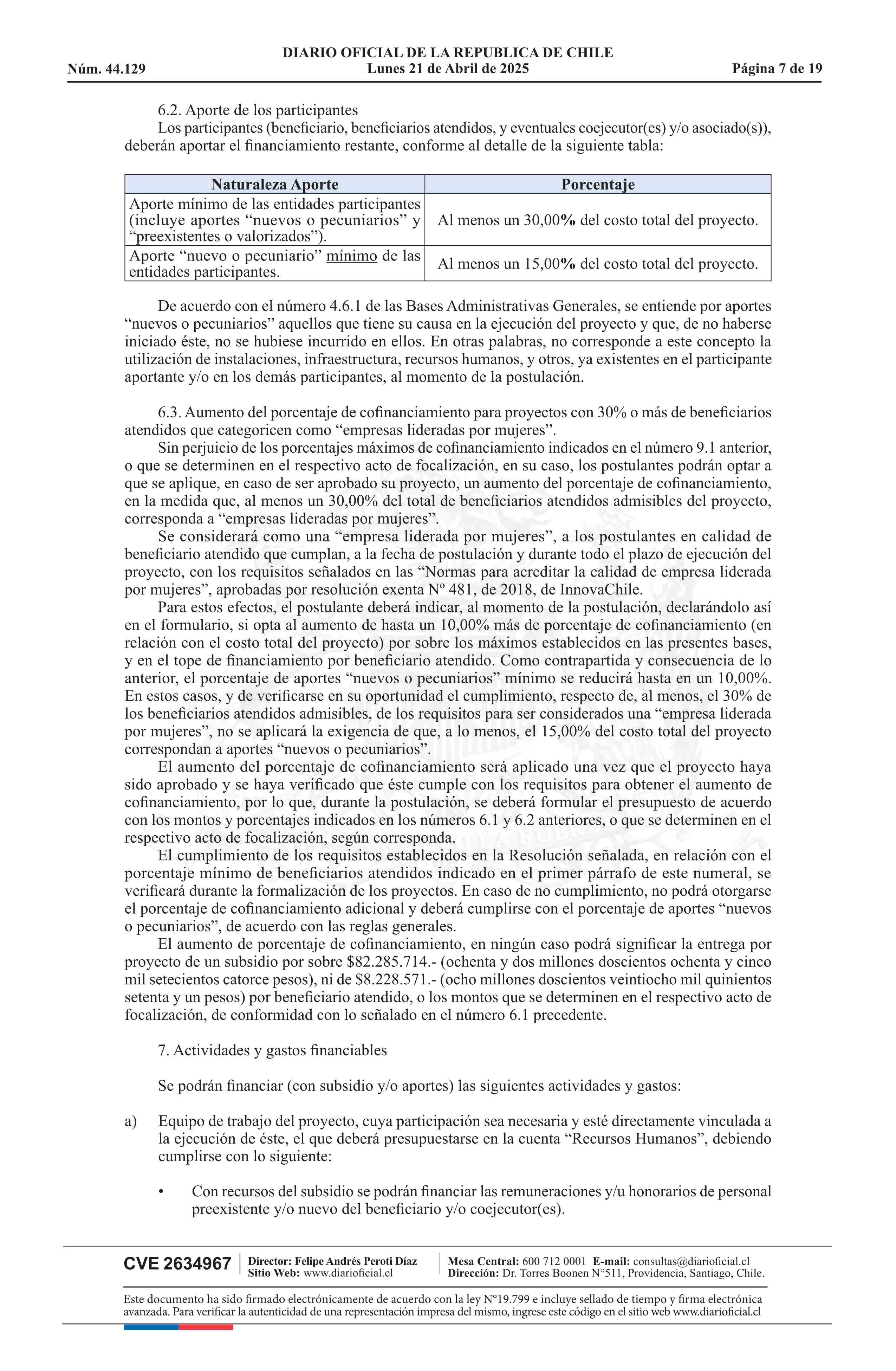 | Título: | Resolución exenta número 125, de 2025.- Modifica instrumento de financiamiento denominado Gestión de Innovación en Pymes y aprueba nuevo texto de sus bases y su anexo |