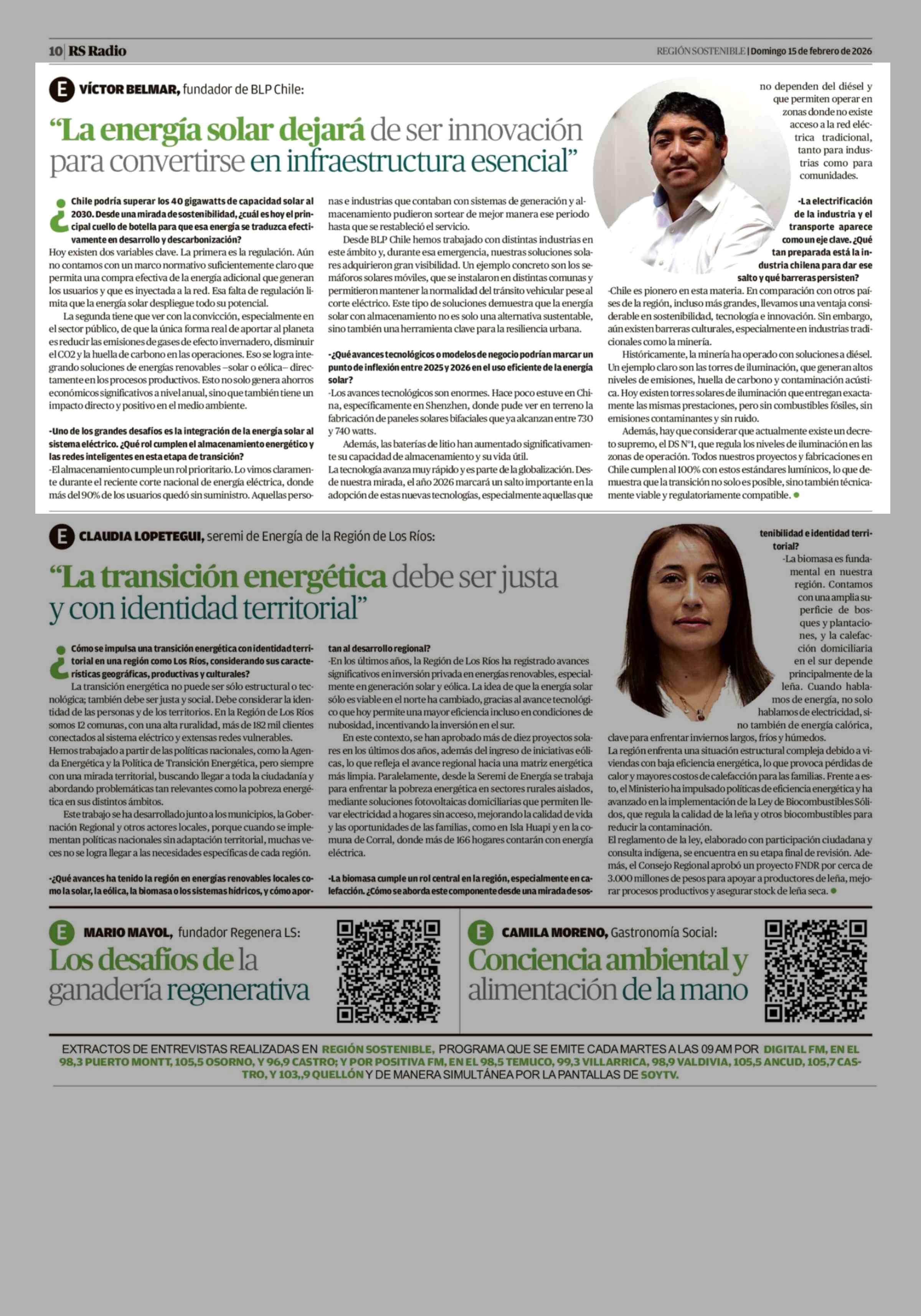 Columnas de Opinión: "La energía solar dejará de ser innovación para convertirse en infraestructura esencial" 15-02-2026 El Austral de la Araucanía |