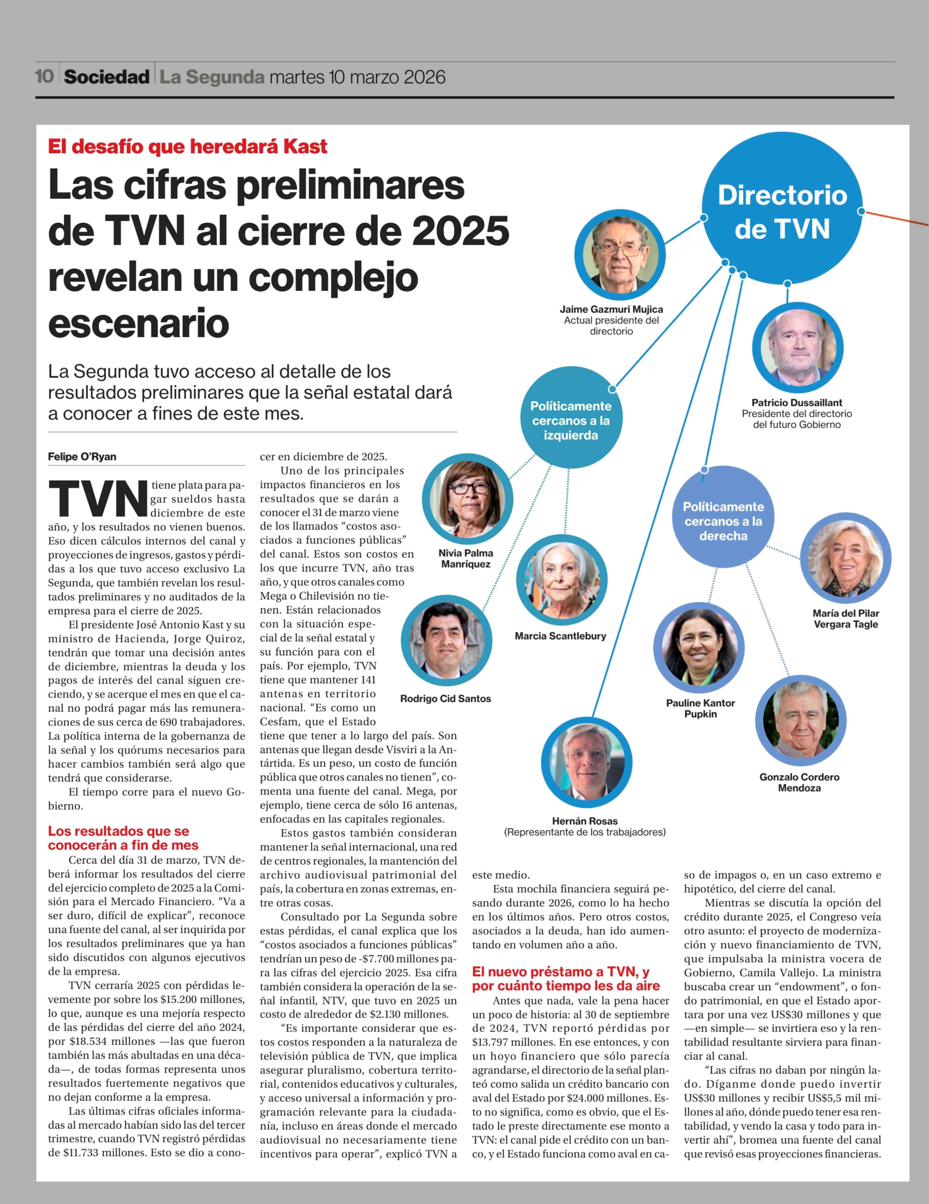 Las cifras preliminares de TVN al cierre de 2025 revelan un complejo escenario 10-03-2026 La Segunda |