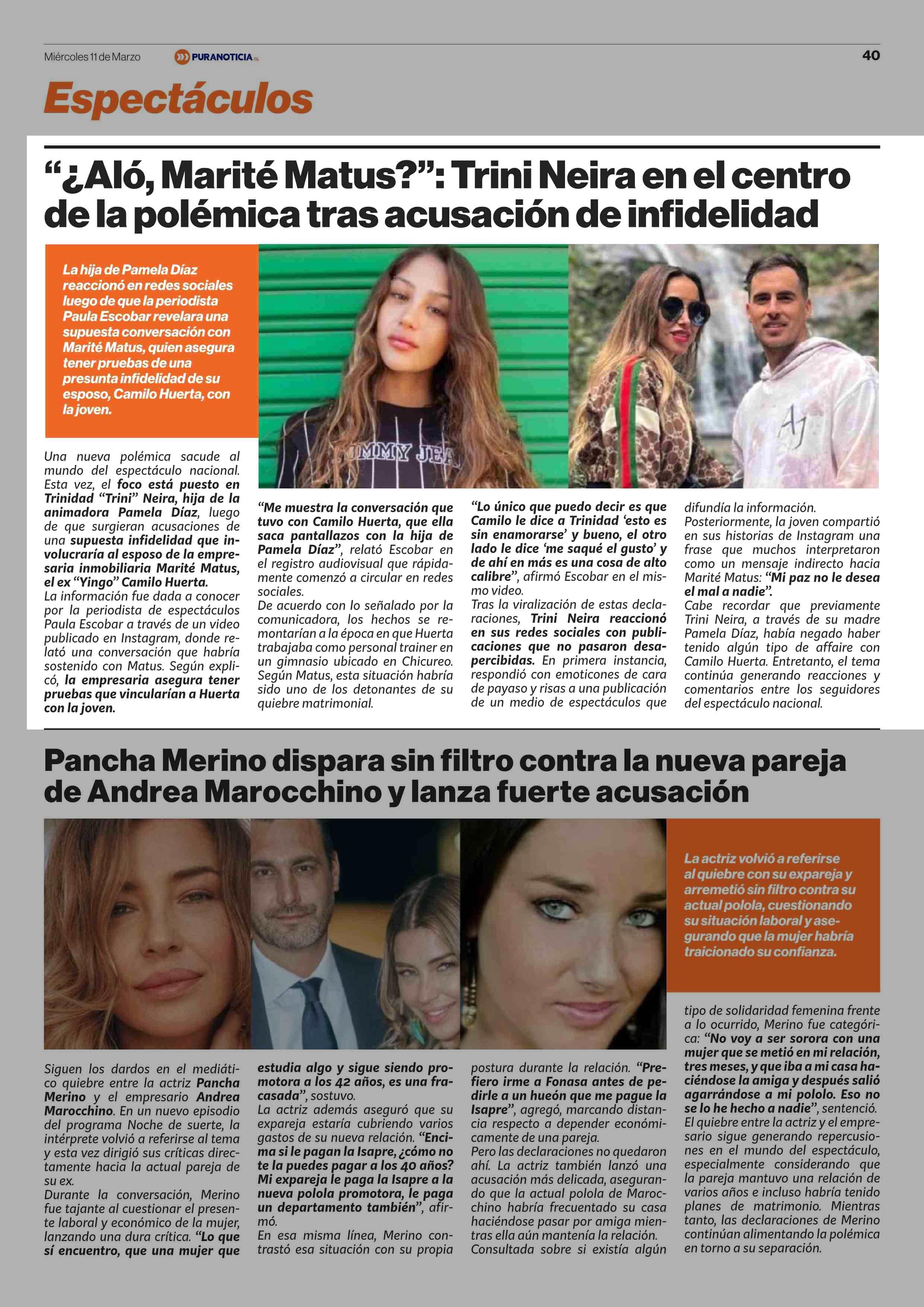 “¿Aló, Marité Matus?”: Trini Neira en el centro de la polémica tras acusación de infidelidad 11-03-2026 Puranoticia.cl |
