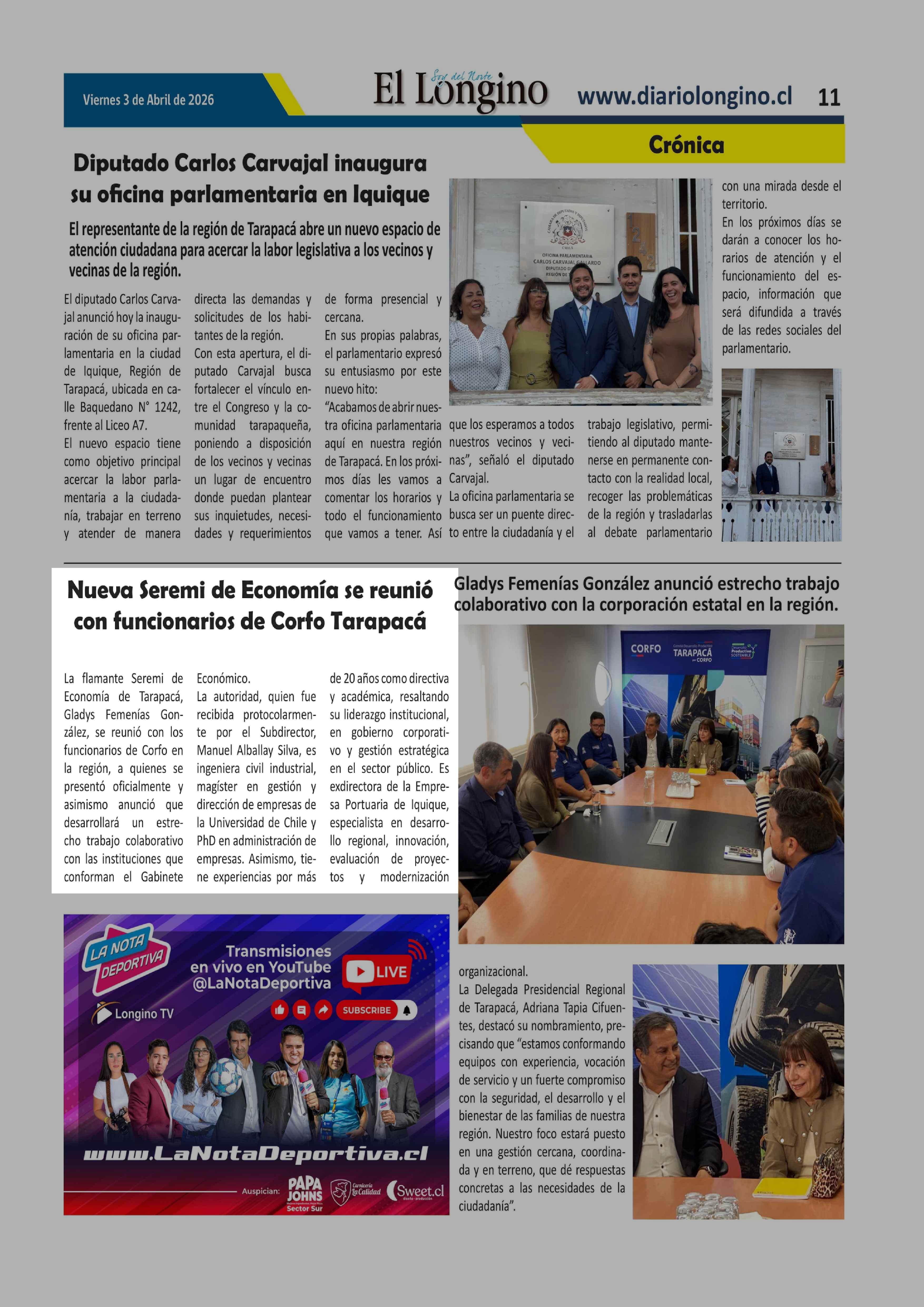 | Fecha: | 03-04-2026 | Sector: | Noticia general | Región: | Región de Tarapacá |
