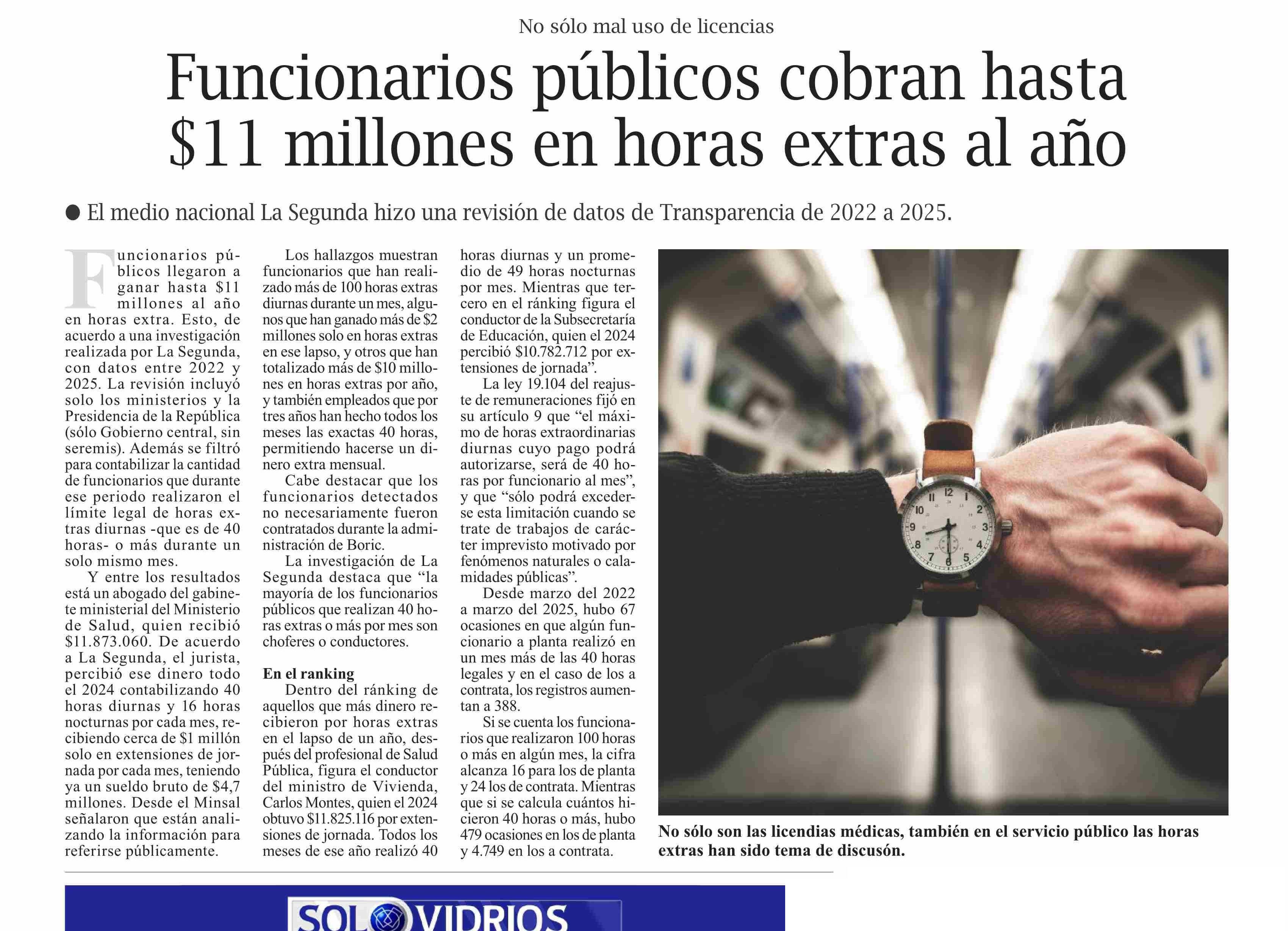 Funcionarios públicos cobran hasta $11 millones en horas extras al año 23-05-2025 El Pingüino |