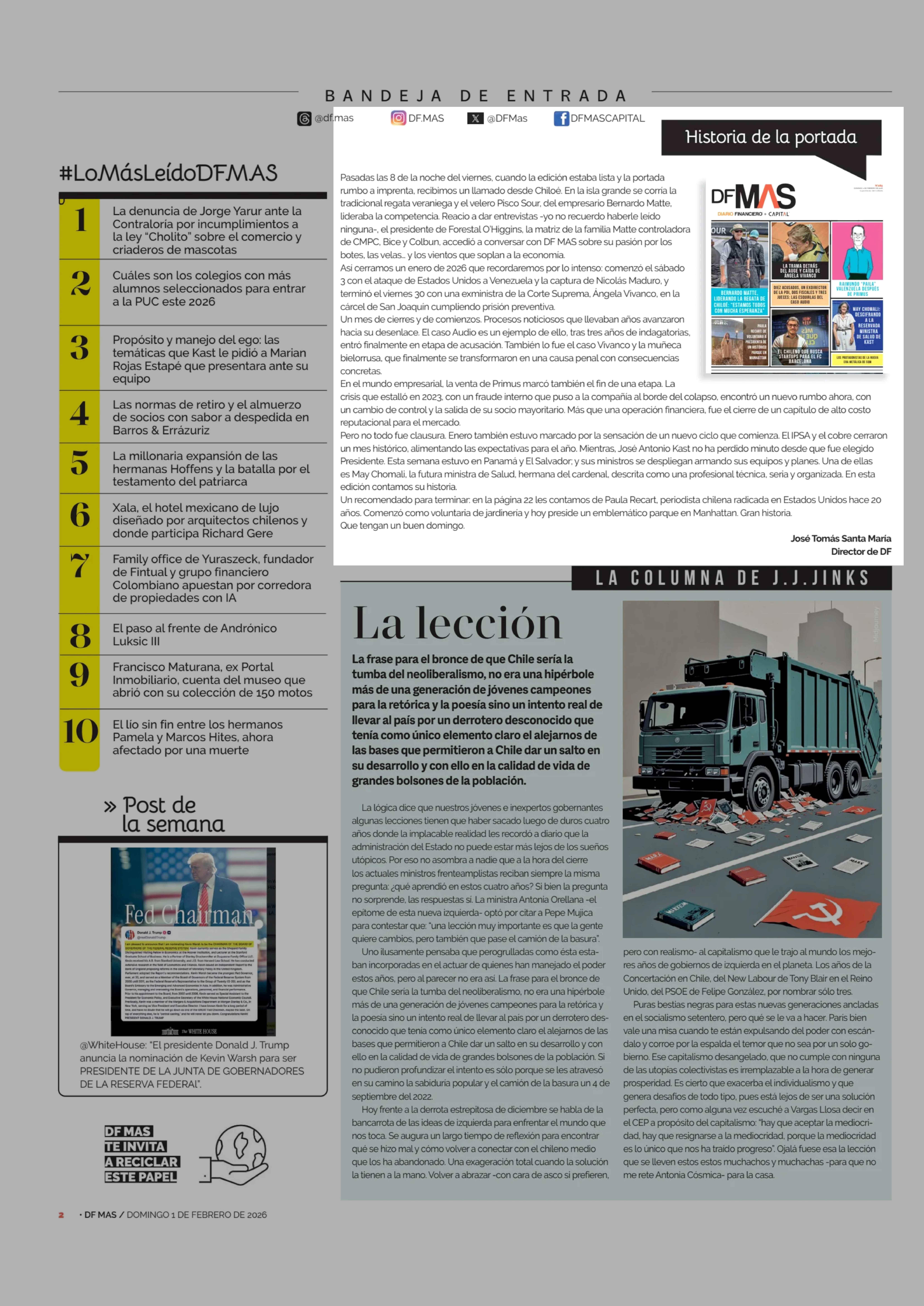 Editorial: Historia de la portada 01-02-2026 Diario Financiero |