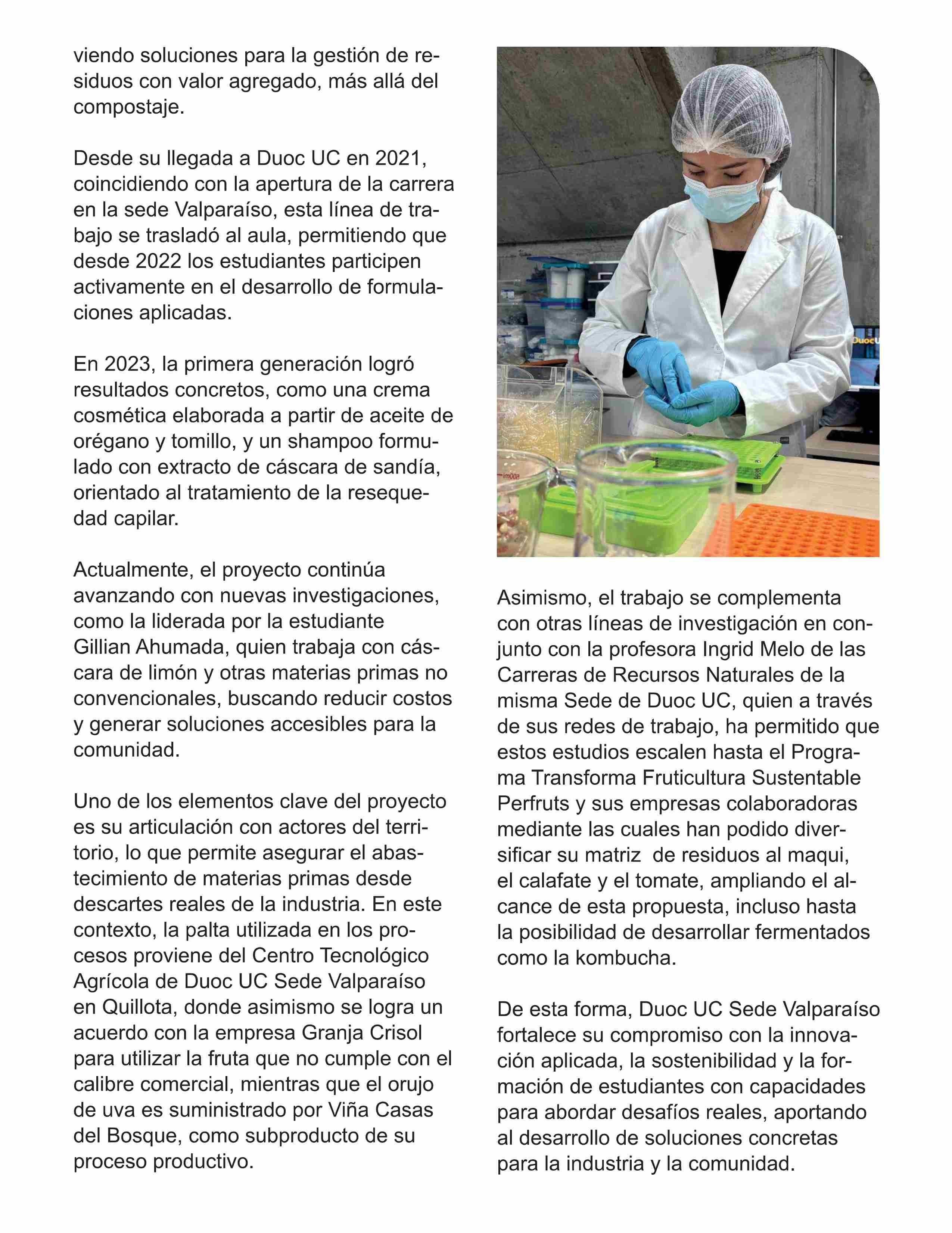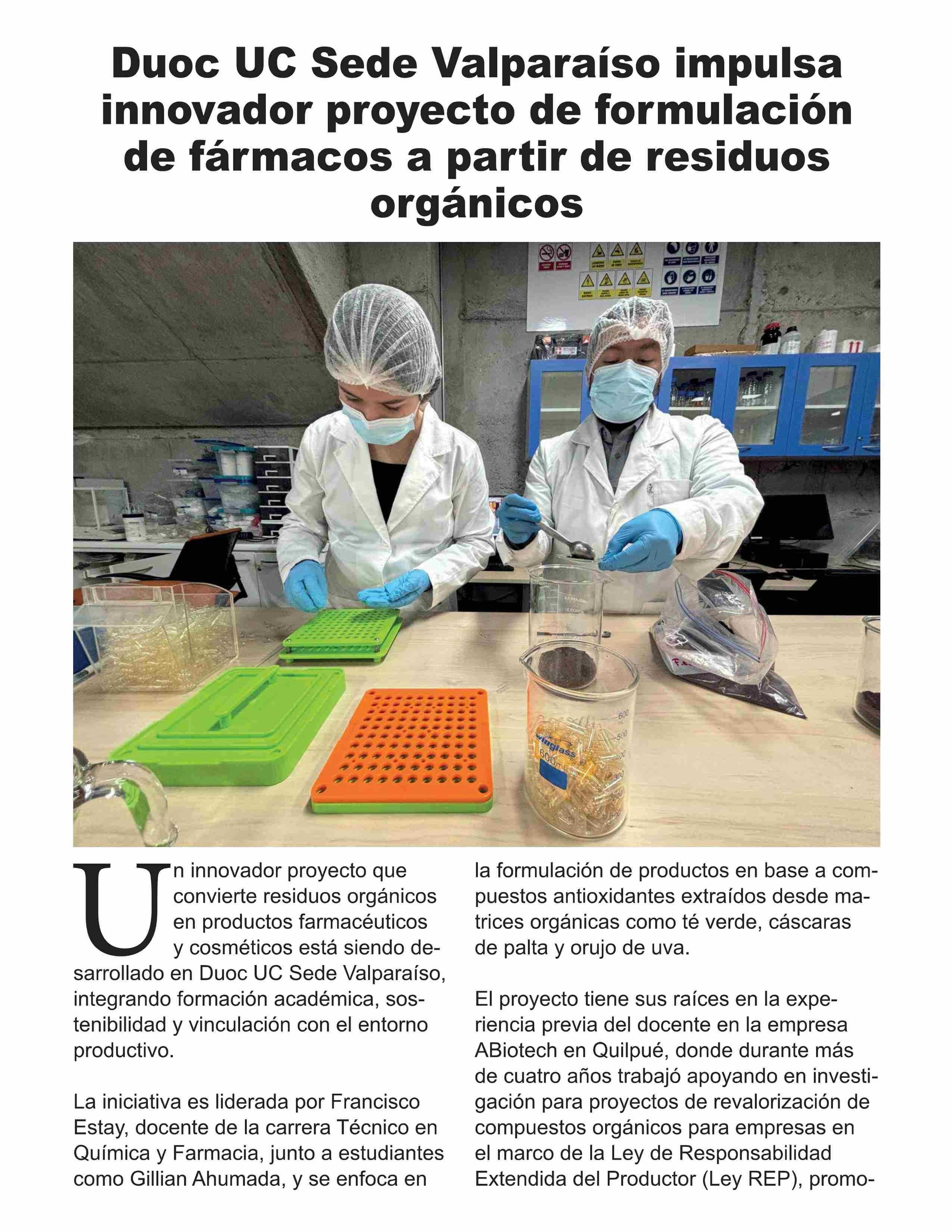 Título: Duoc UC Sede Valparaíso impulsa innovador proyecto de formulación de fármacos a partir de residuos orgánicos