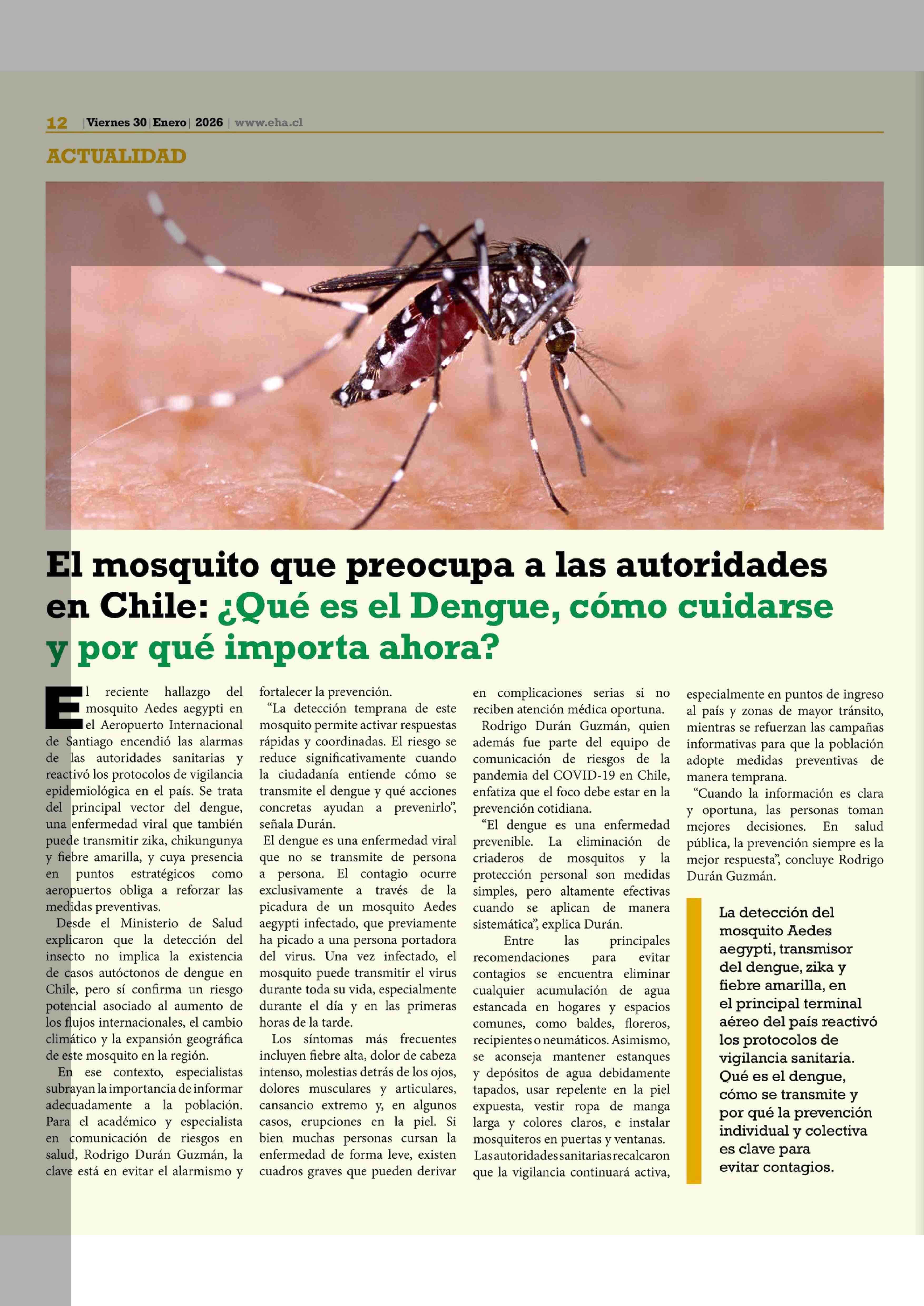 El mosquito que preocupa a las autoridades en Chile: ¿Qué es el Dengue, cómo cuidarse y por qué importa ahora? 30-01-2026 El Heraldo Austral |