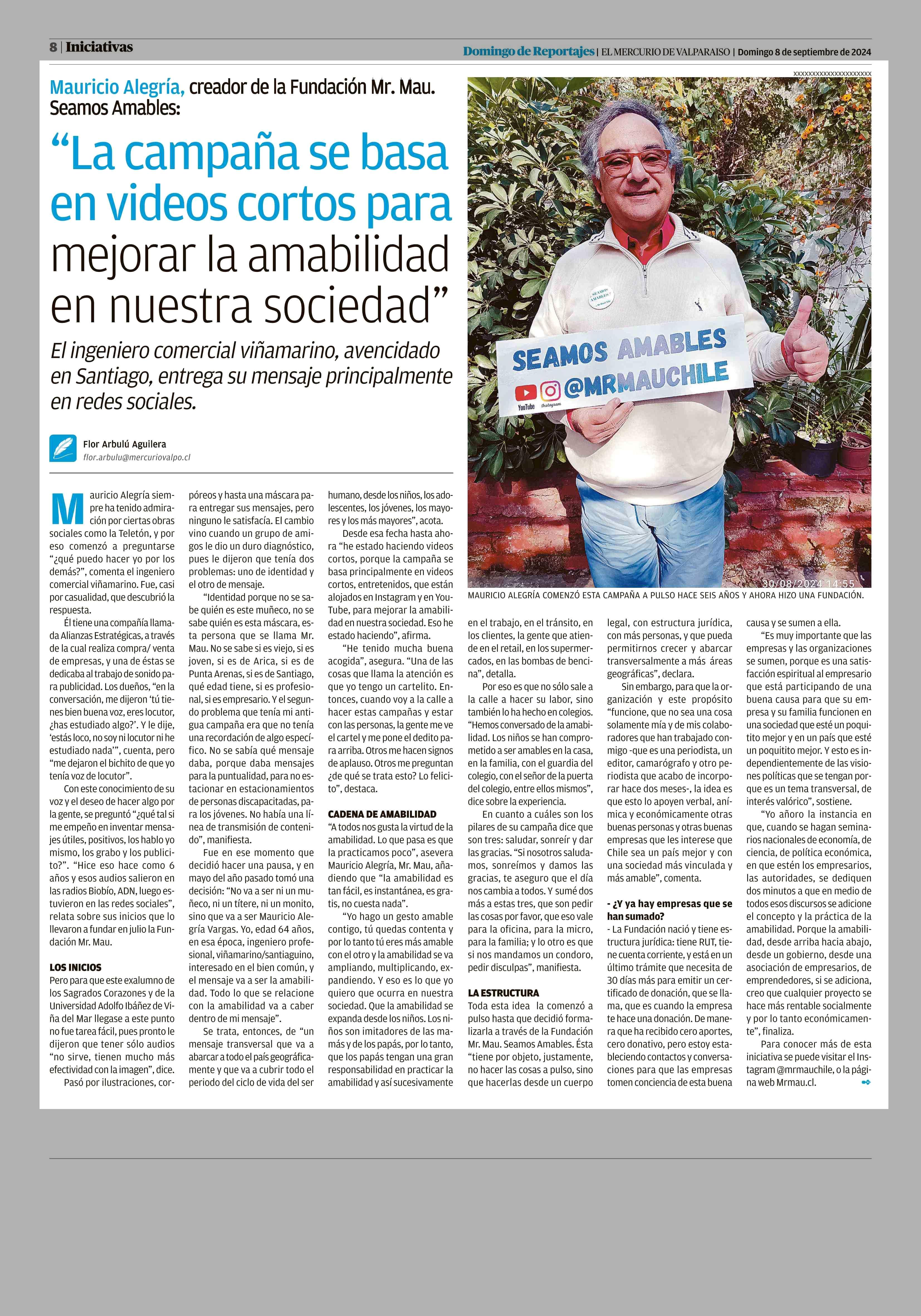 “La campaña se basa en videos cortos para mejorar la amabilidad en nuestra sociedad” 08-09-2024 El Mercurio de Valparaíso |