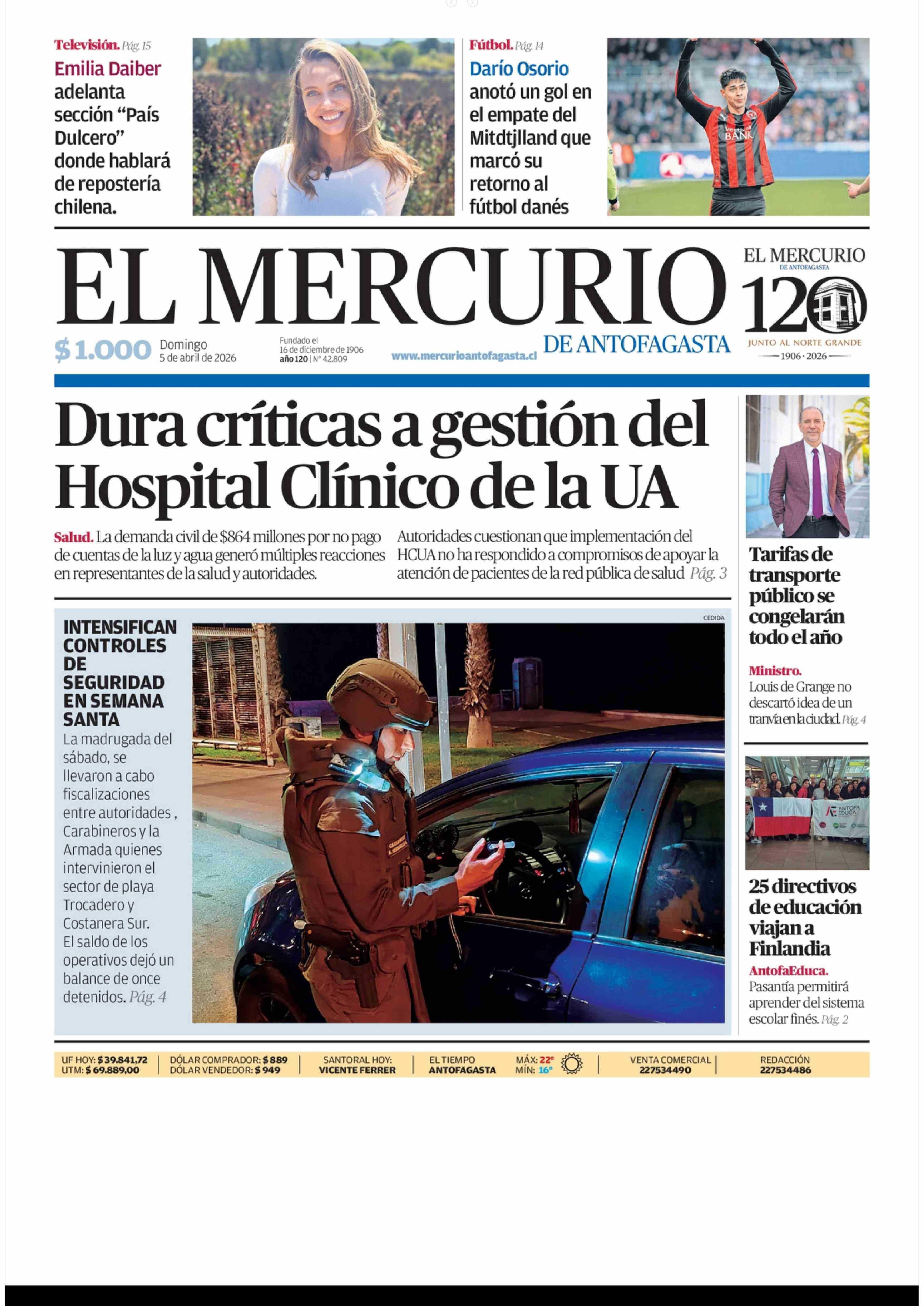 Fecha: 05-04-2026 Sector: Portada Región: Región de Antofagasta