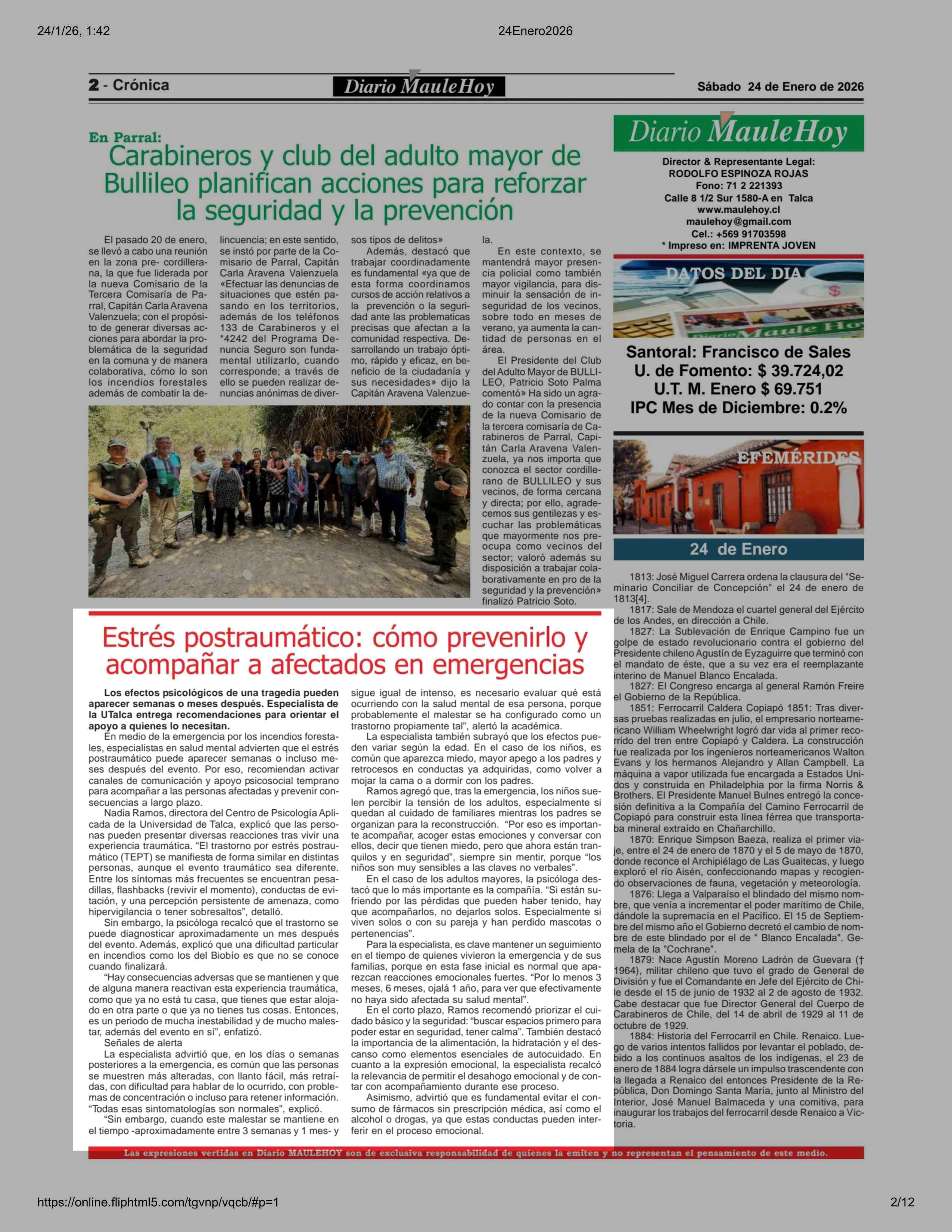 Fecha: 24-01-2026 Sector: Noticia general Región: Región del Maule