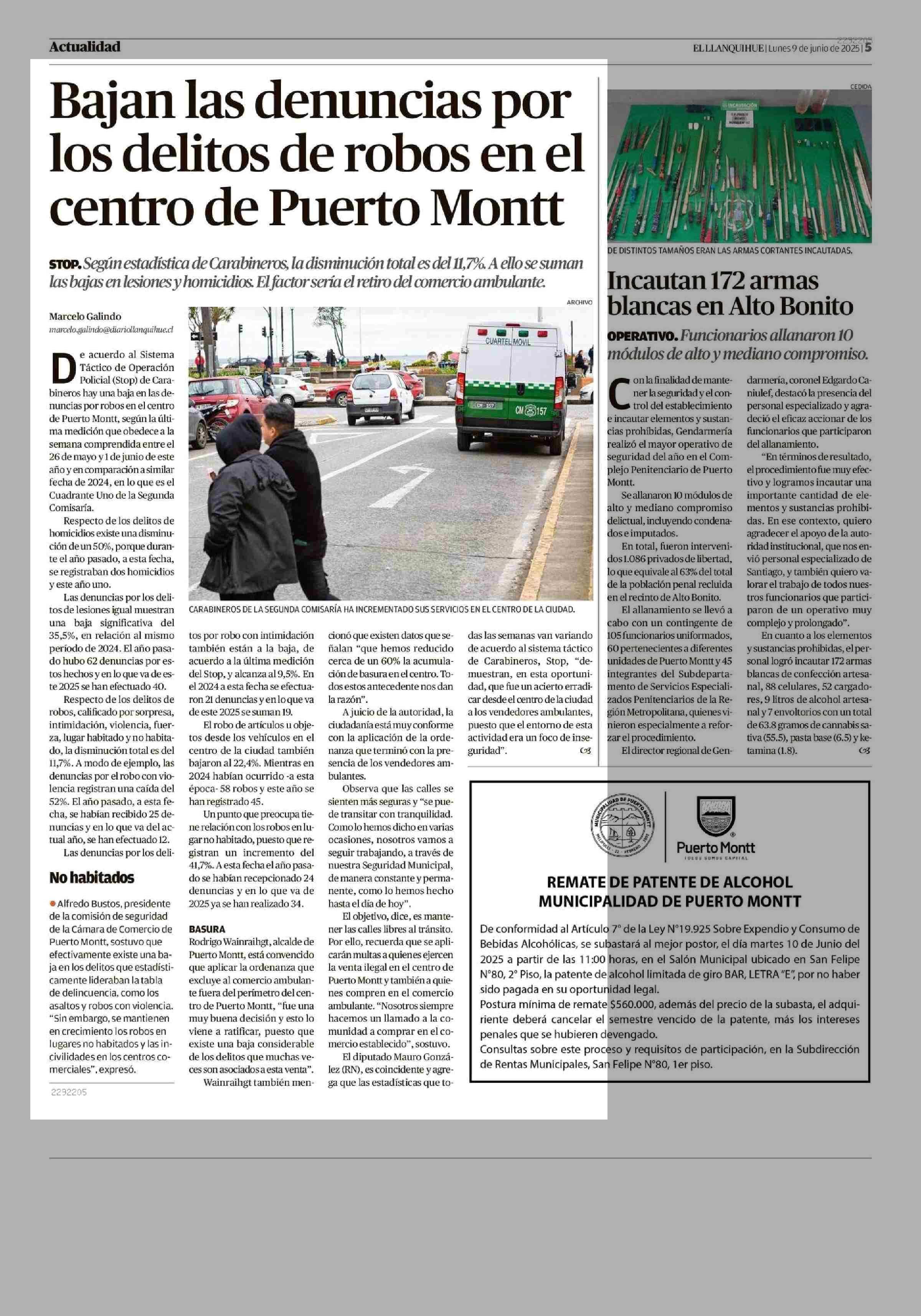 | Título: | Bajan las denuncias por los delitos de robos en el centro de Puerto Montt |