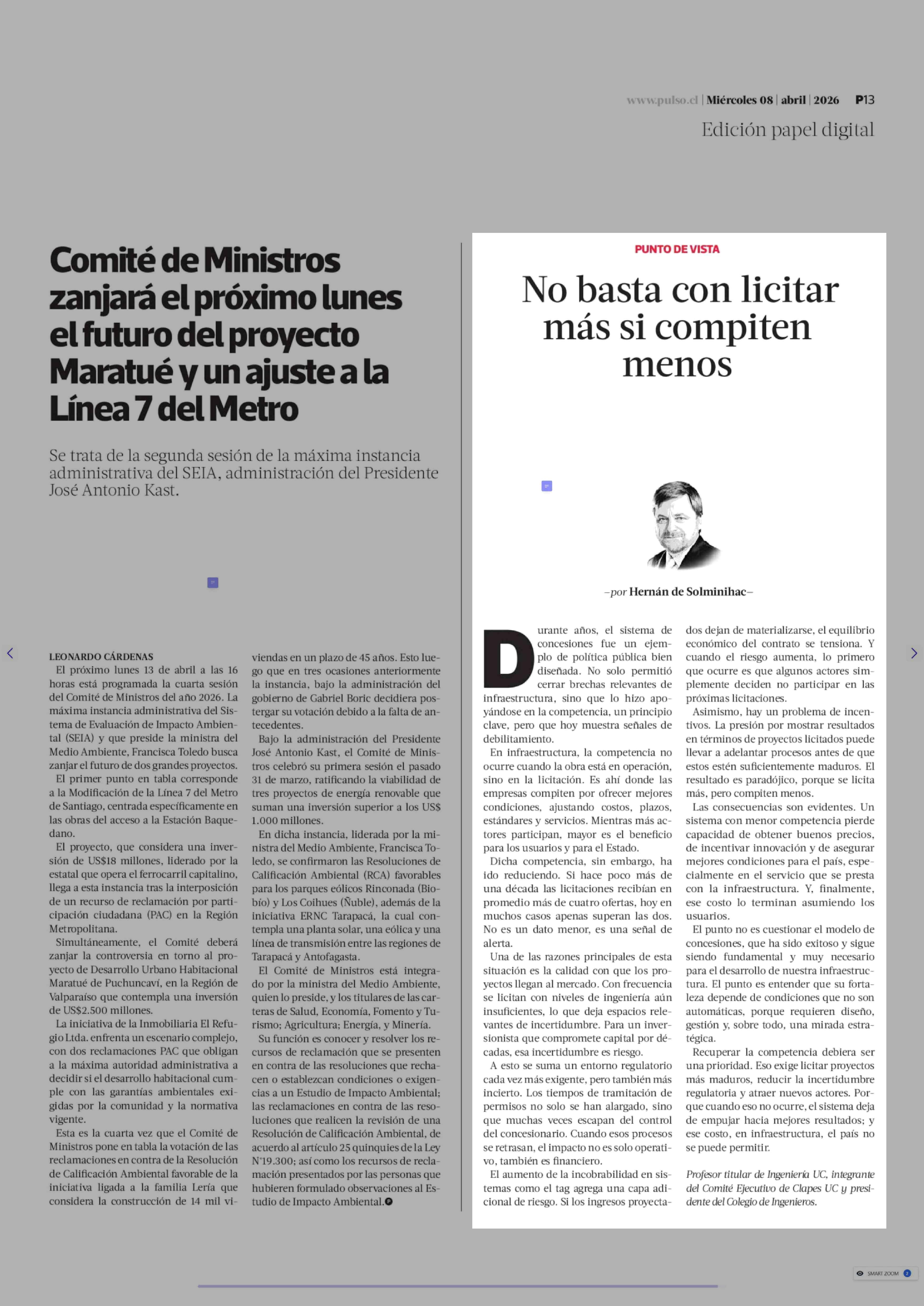 Título: Columnas de Opinión: No basta con licitar más si compiten menos