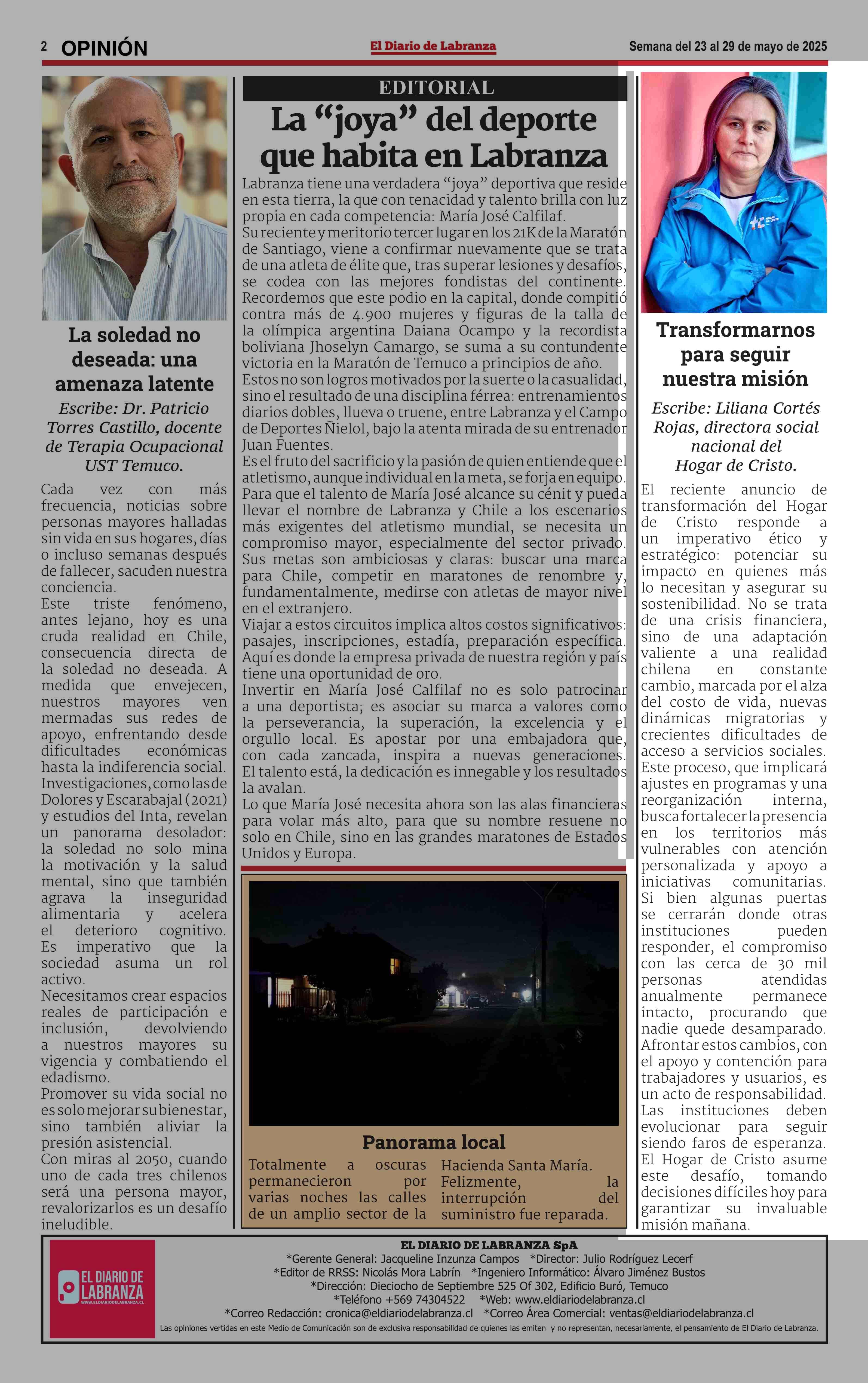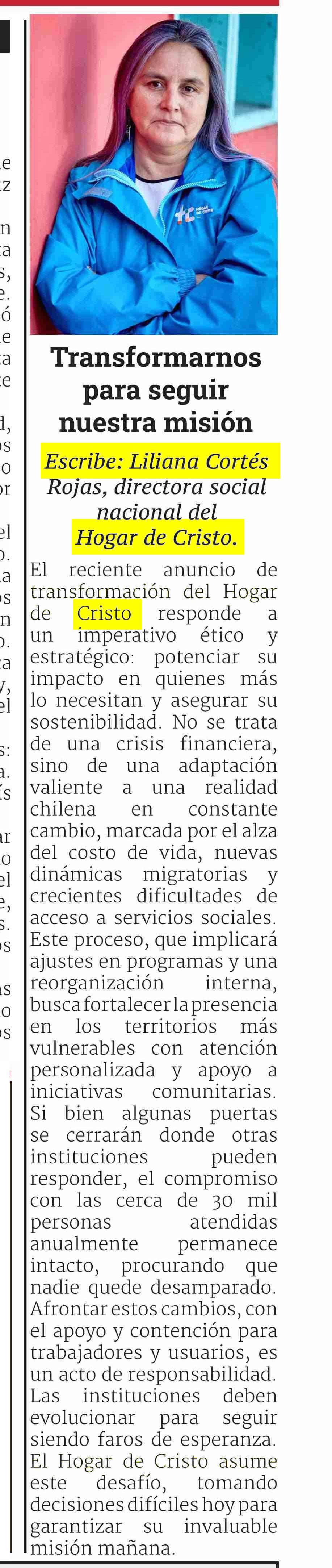 COLUMNAS DE OPINIÓN: Transformarnos para seguir nuestra misión 26-05-2025 EL DIARIO DE LABRANZA |