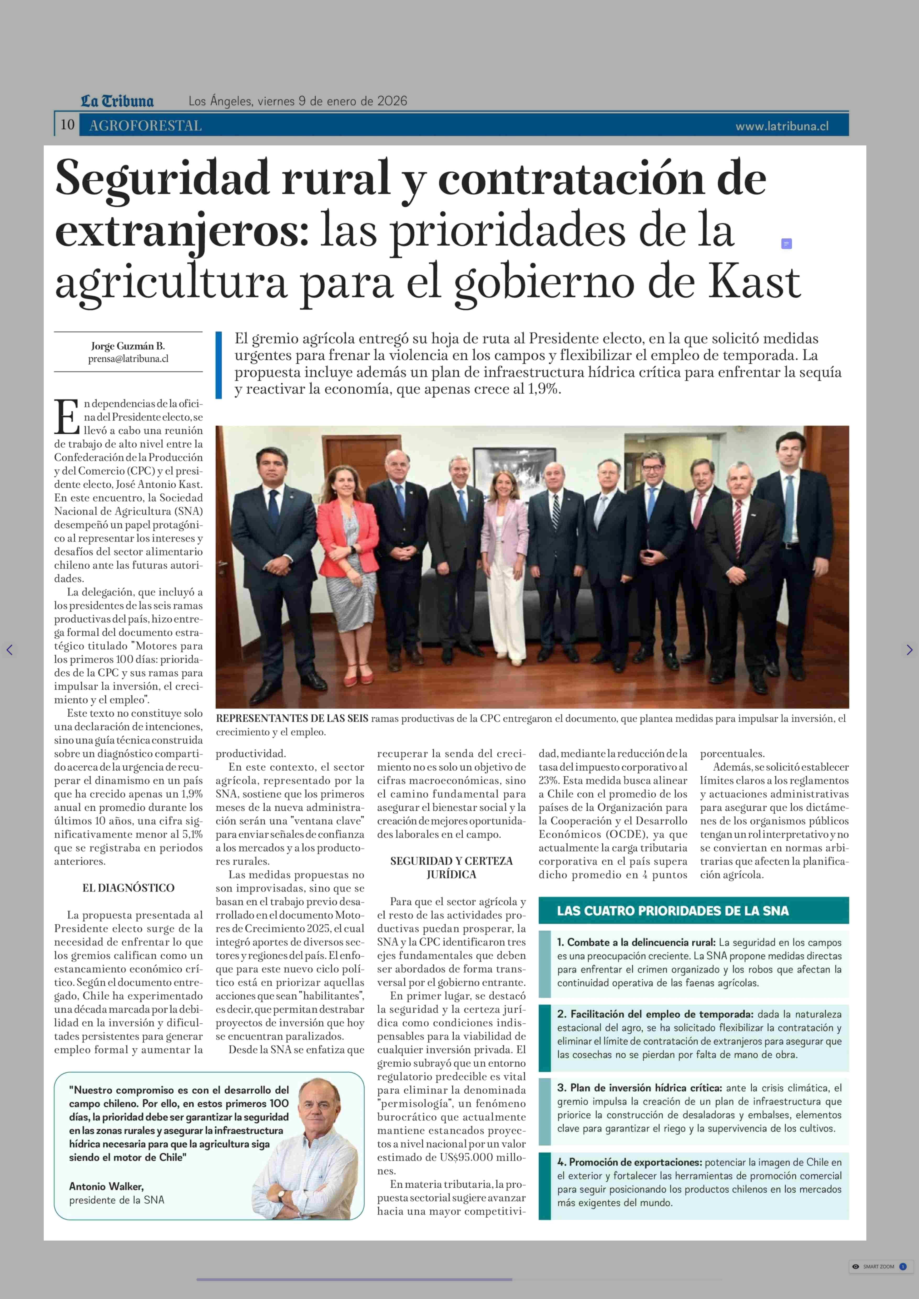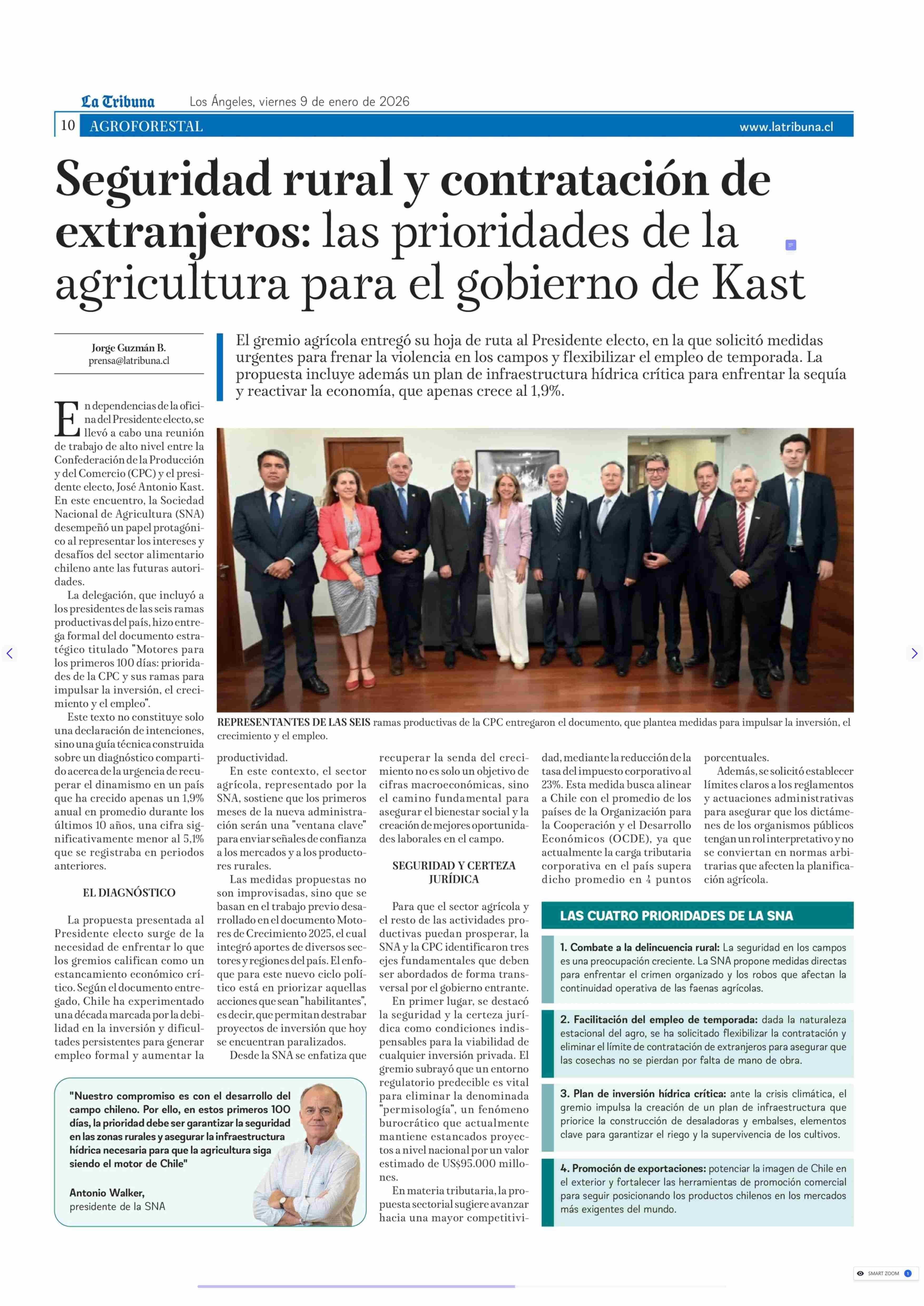 Seguridad rural y contratación de extranjeros: las prioridades de la agricultura para el gobierno de Kast 09-01-2026 La Tribuna |