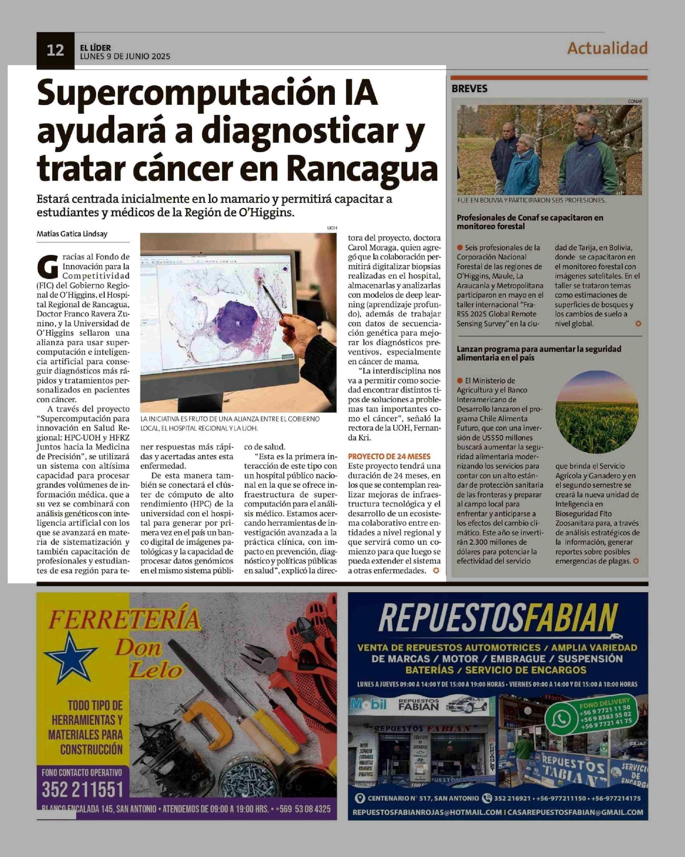 Supercomputación lA ayudará a diagnosticar y tratar cáncer en Rancagua 09-06-2025 El Líder |
