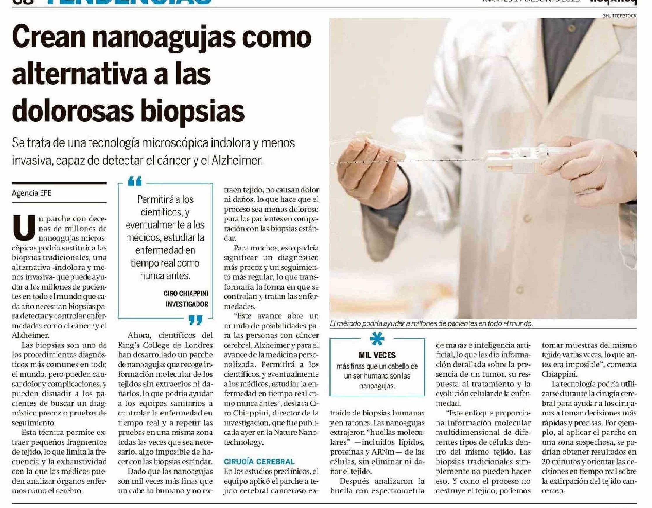 Crean nanoagujas como dolorosas biopsias alternativa a las 17-06-2025 Hoy x Hoy |