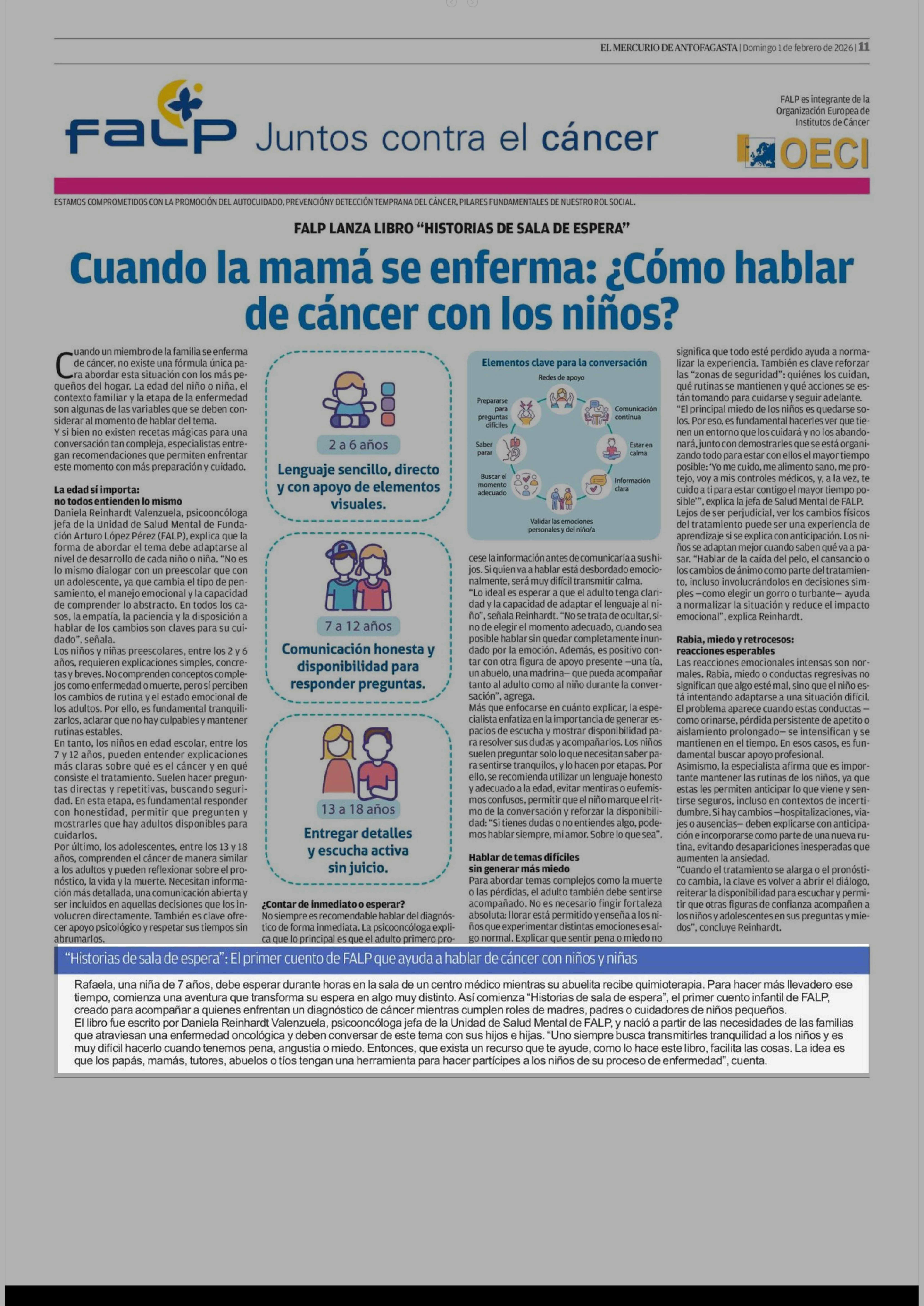 "Historias de sala de espera": El primer cuento de FALP que ayuda a hablar de cáncer con niños y niñas 01-02-2026 El Mercurio de Antofagasta |