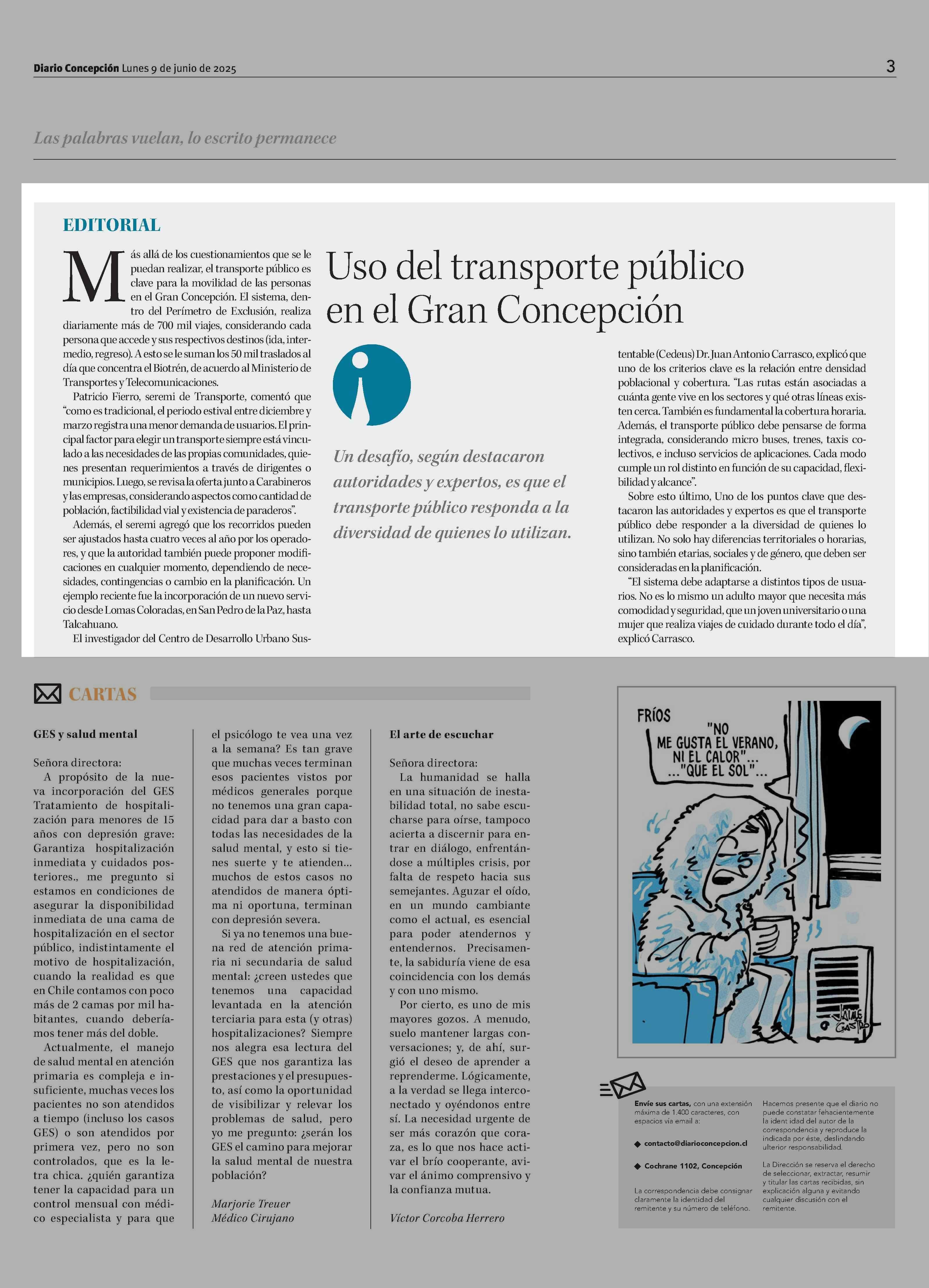 EDITORIAL: Uso del transporte público en el Gran Concepción 09-06-2025 Diario Concepción |