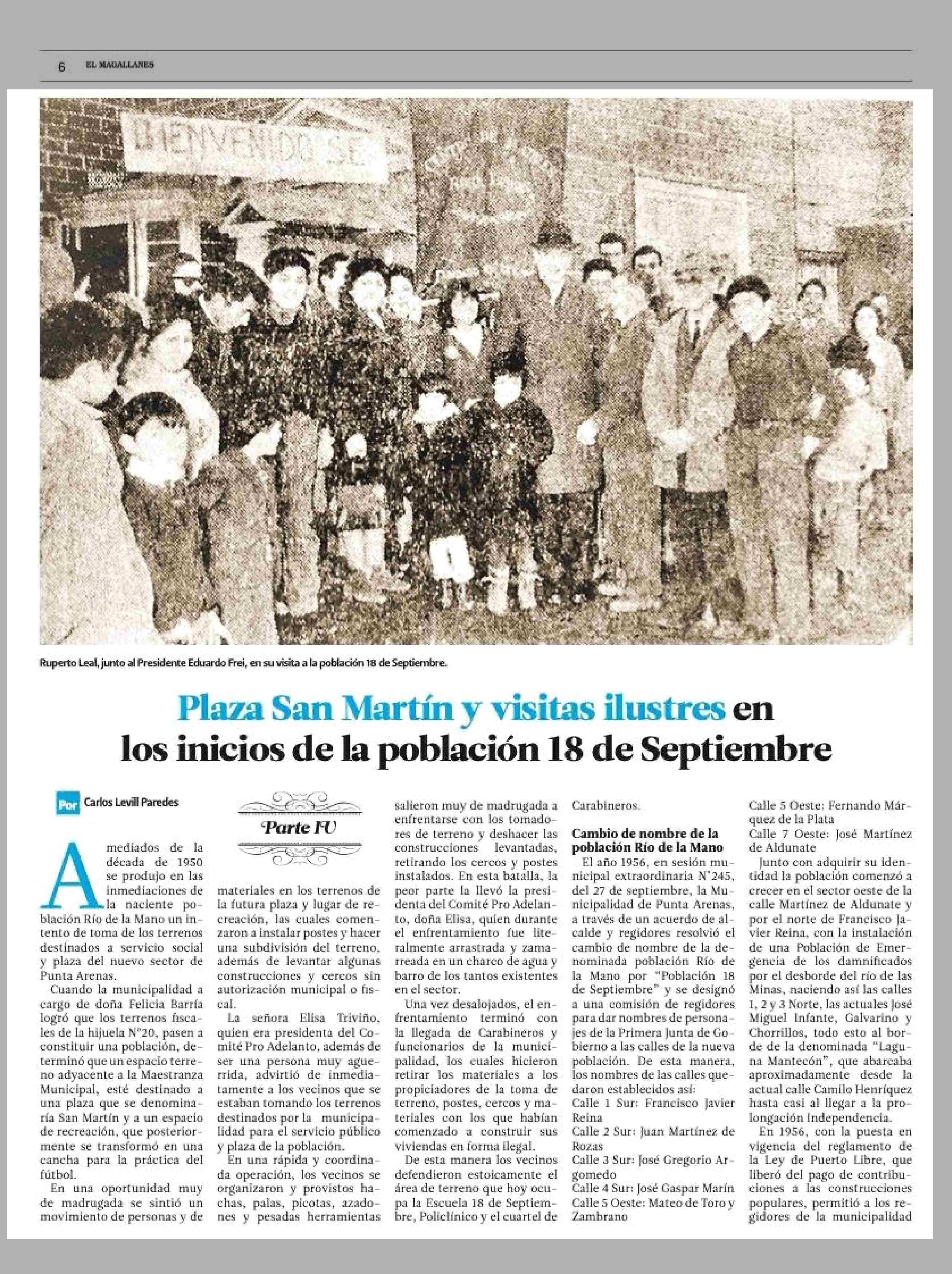 Plaza San Martín y visitas ilustres en los inicios de la población 18 de Septiembre 01-10-2023 El Magallanes |