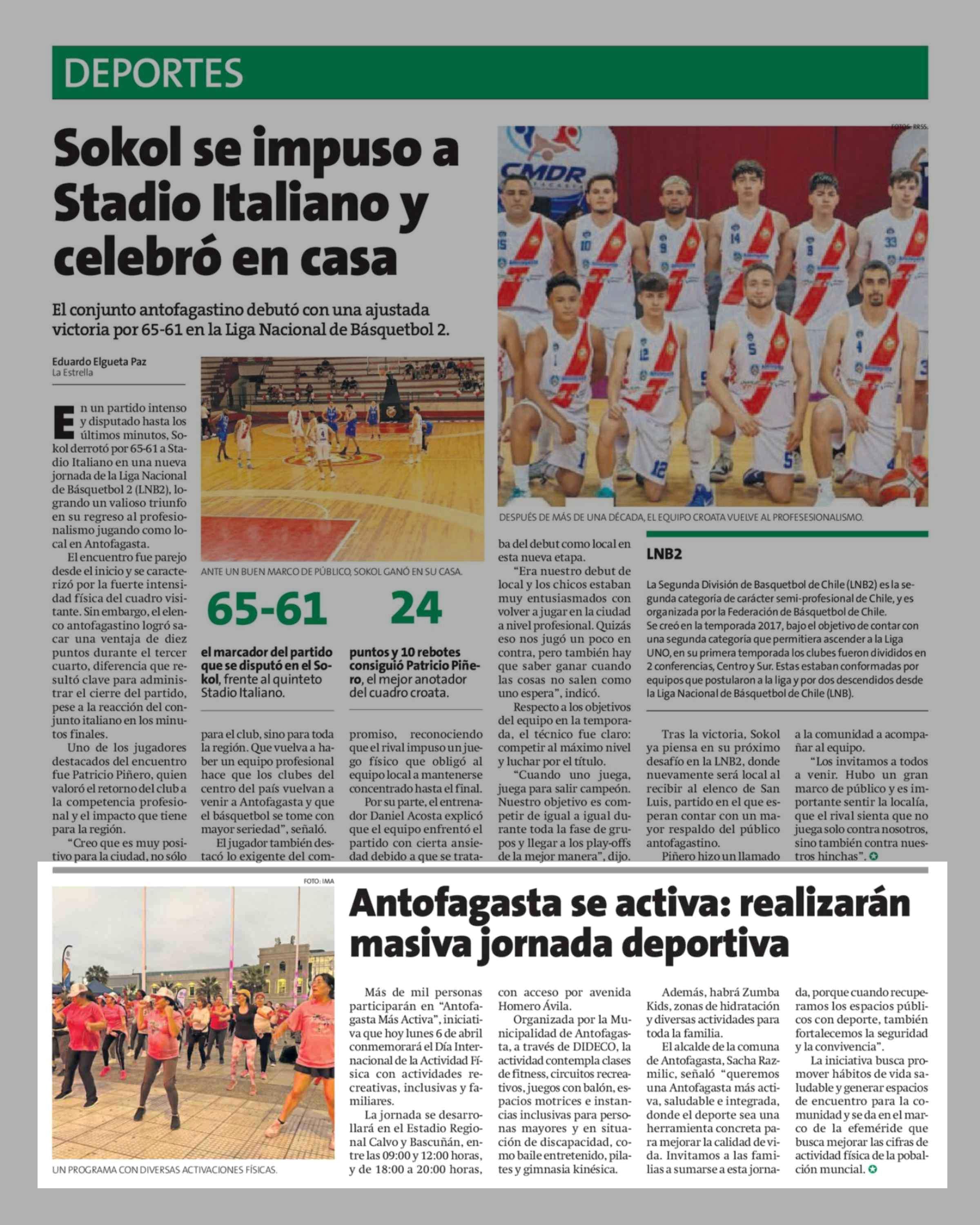 Antofagasta se activa: realizarán masiva jornada deportiva 06-04-2026 La Estrella de Antofagasta |