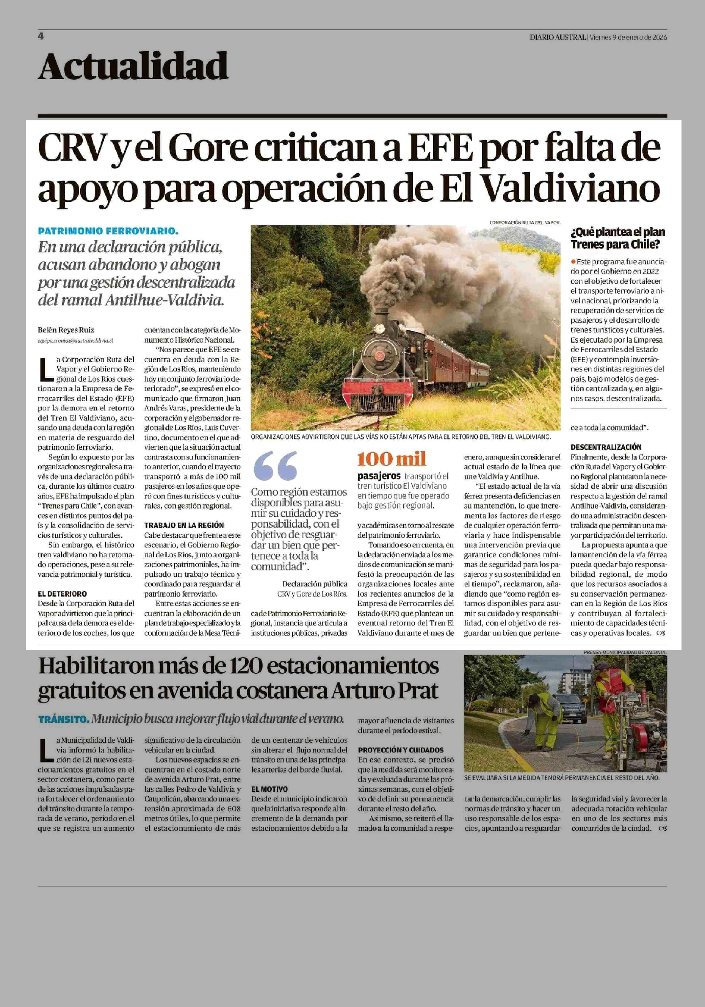 Fecha: 09-01-2026 Sector: Noticia general Región: Región de Los Ríos