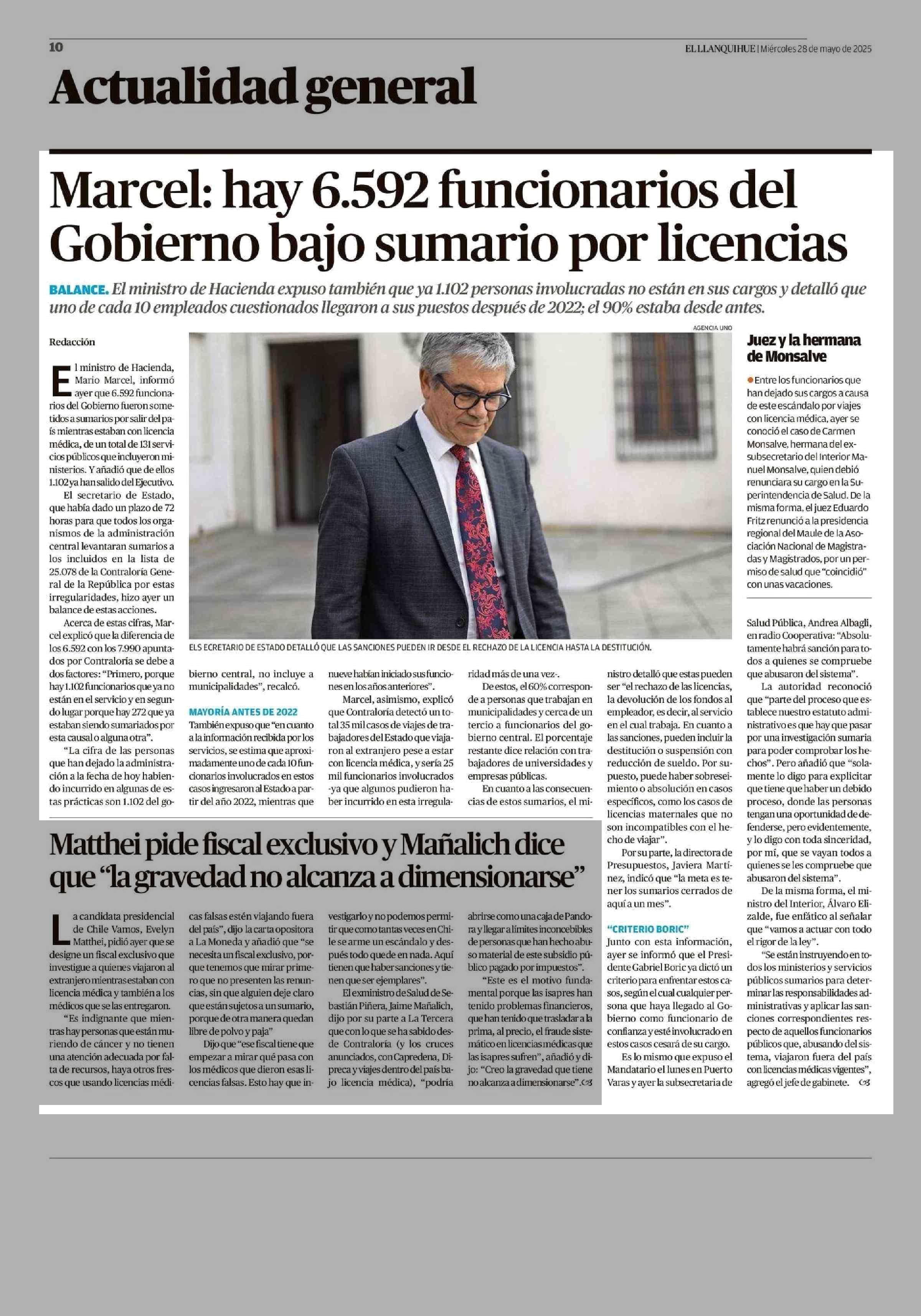 Título: Marcel: hay 6.592 funcionarios del Gobierno bajo sumario por licencias