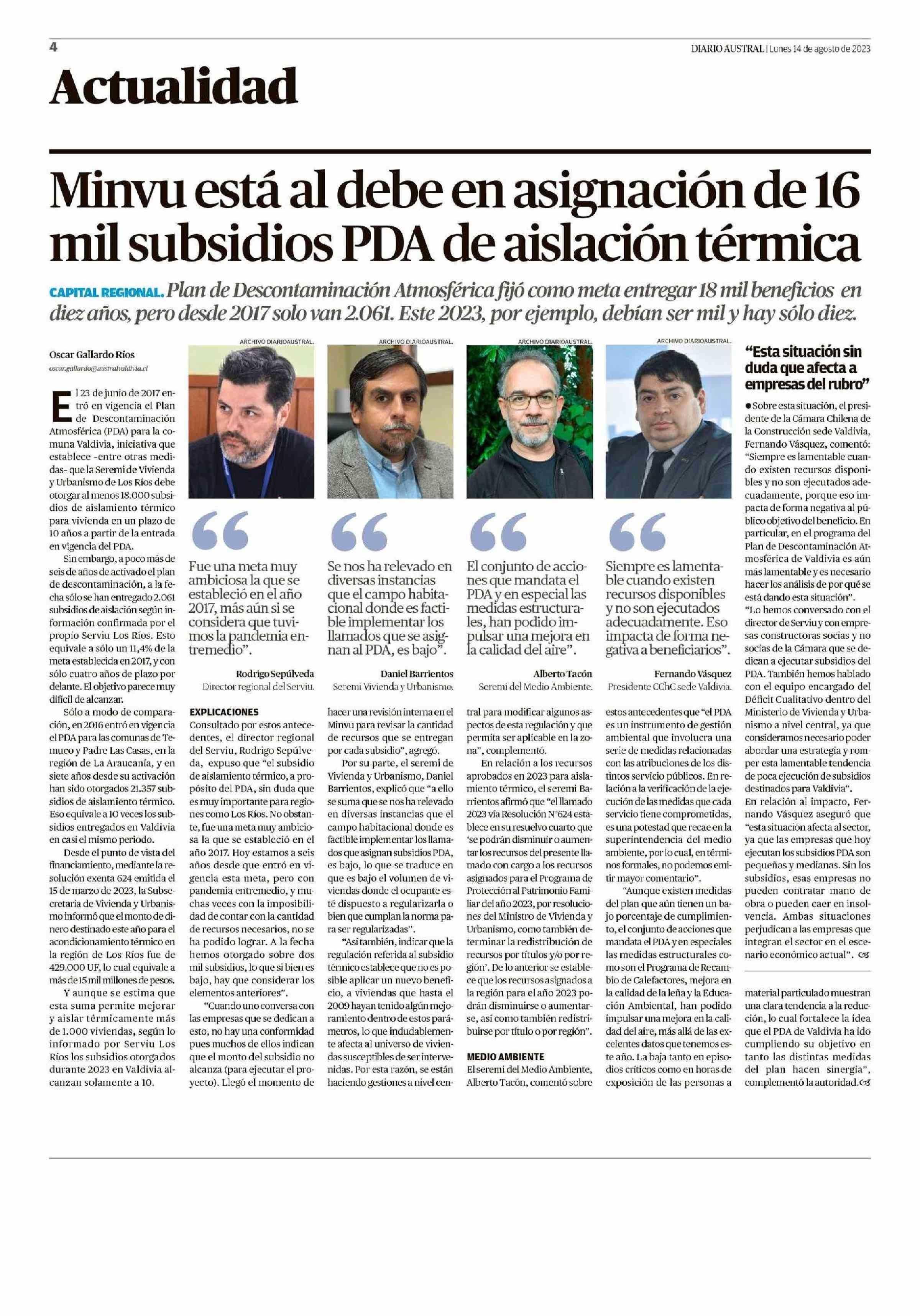 Minvu está al debe en asignación de 16 mil subsidios PDA de aislación térmica 14-08-2023 Diario Austral Región de Los Ríos |