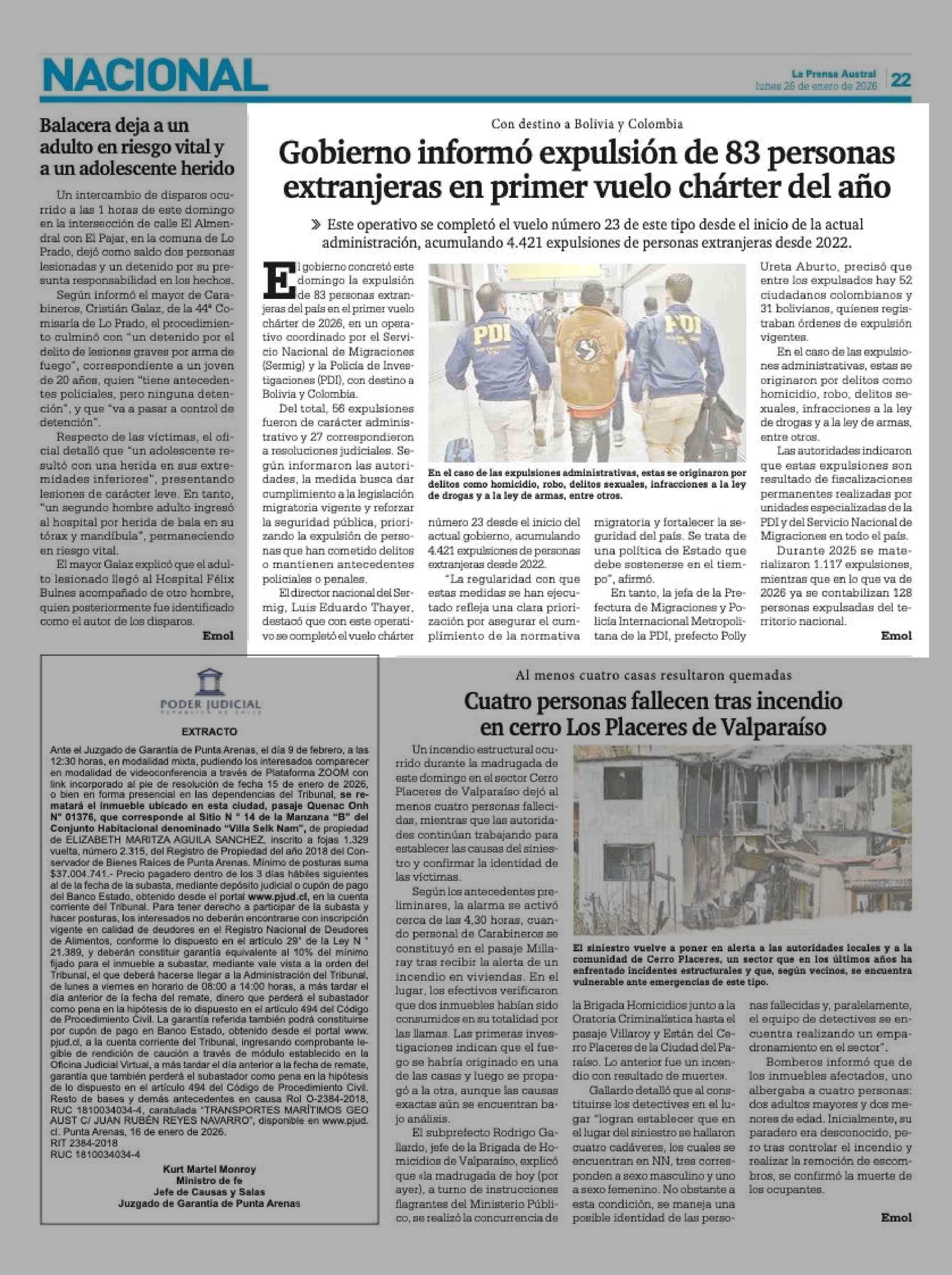 Fecha: 26-01-2026 Sector: Noticia general Región: Región de Magallanes y de la Antártica Chilena