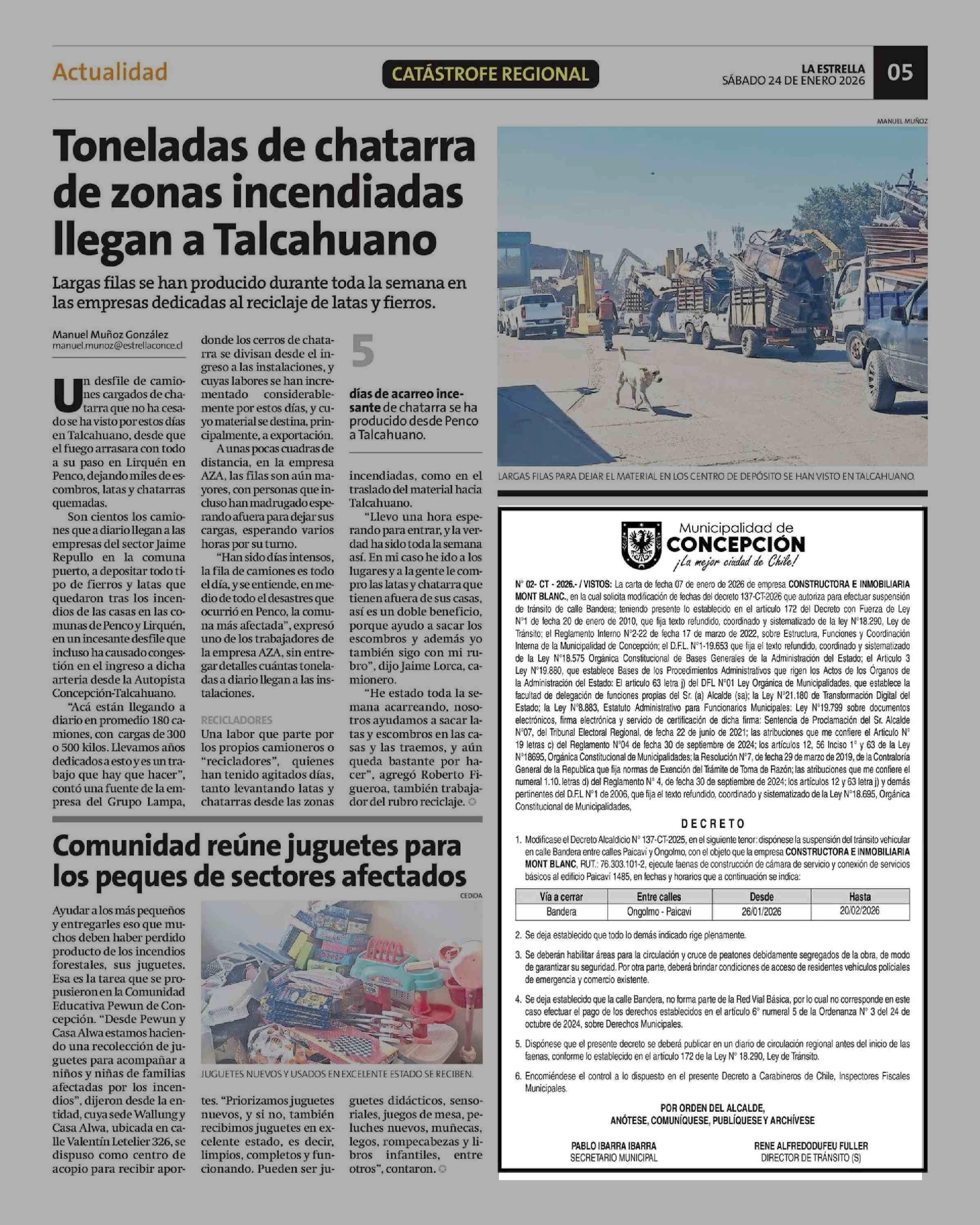 Extractos: Municipalidad de CONCEPCIÓN ¡La mejor ciudad de Chile! 24-01-2026 La Estrella de Concepción |
